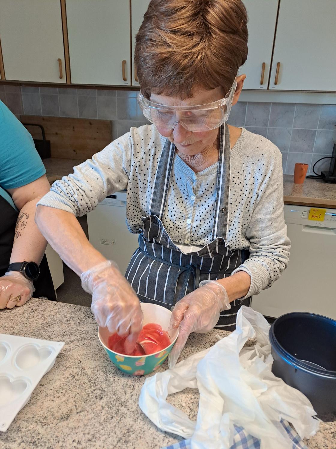 5.mai stod produksjon av egne såper på programmet her i Kvæfjord. Deltakere var både medlemmer og ikkemedlemmer. Helene og Berit fra Målselv bygdekvinnelag var stødige kursledere. Det ble en trivelig kveld og masse flotte produkter.