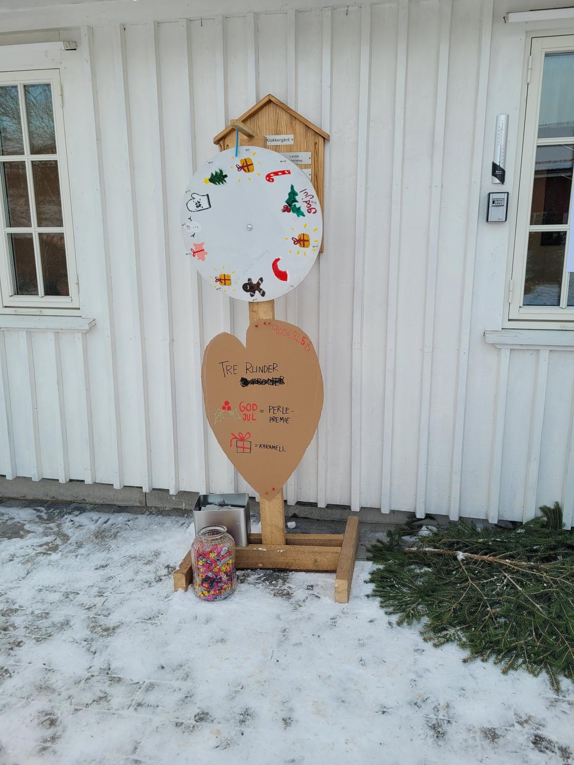 Ute kunne man prøve lykken på lykkehjulet og kjøre med hest med "slede" og varme seg på bålpannene.
