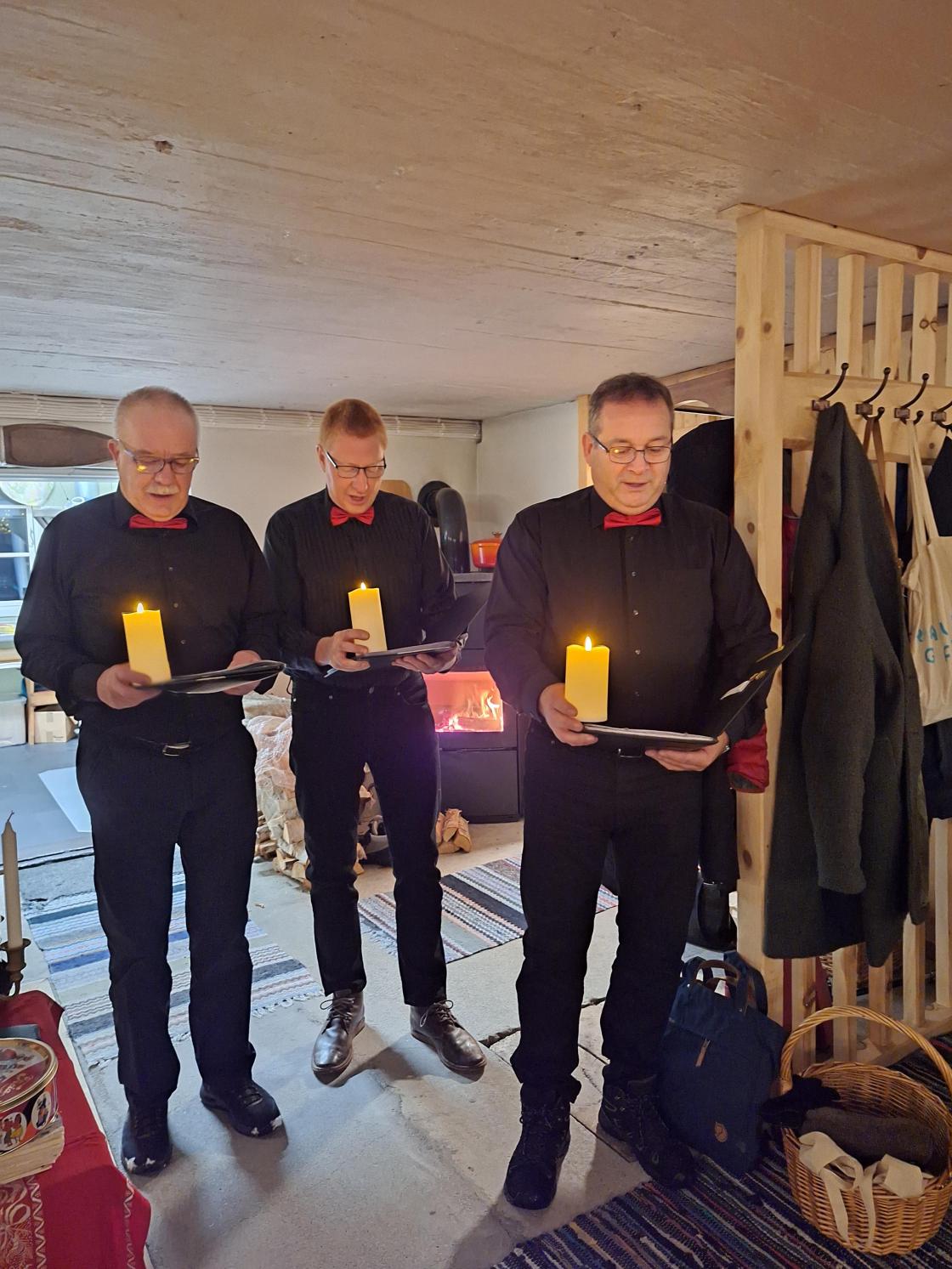 Så er vi i adventstida, og med den vårt tradisjonelle adventtreff. Feststemte damer i alle aldre møttes til god mat og heimlaga øl. Vi øvde på julesanger, og hadde loddtrekning. Overraskelsen i år var tre av våre ektemenn som stilte opp som Santa Lucia, der vi fikk vår egen sang. Den lød slik: Det lyser i skogagrene, av tindrande ljos i kveld men ingen små barnehender, er det som ljosa held. Å klåre dei står og lyser, for kvinner i bygda vår, som styre og stelle for alle, så dei får det trygt og godt. I kveld kan døkk feira prisen, dei beste i Noregs land så kos døkk med mat og drikke, laga for eiga hand.