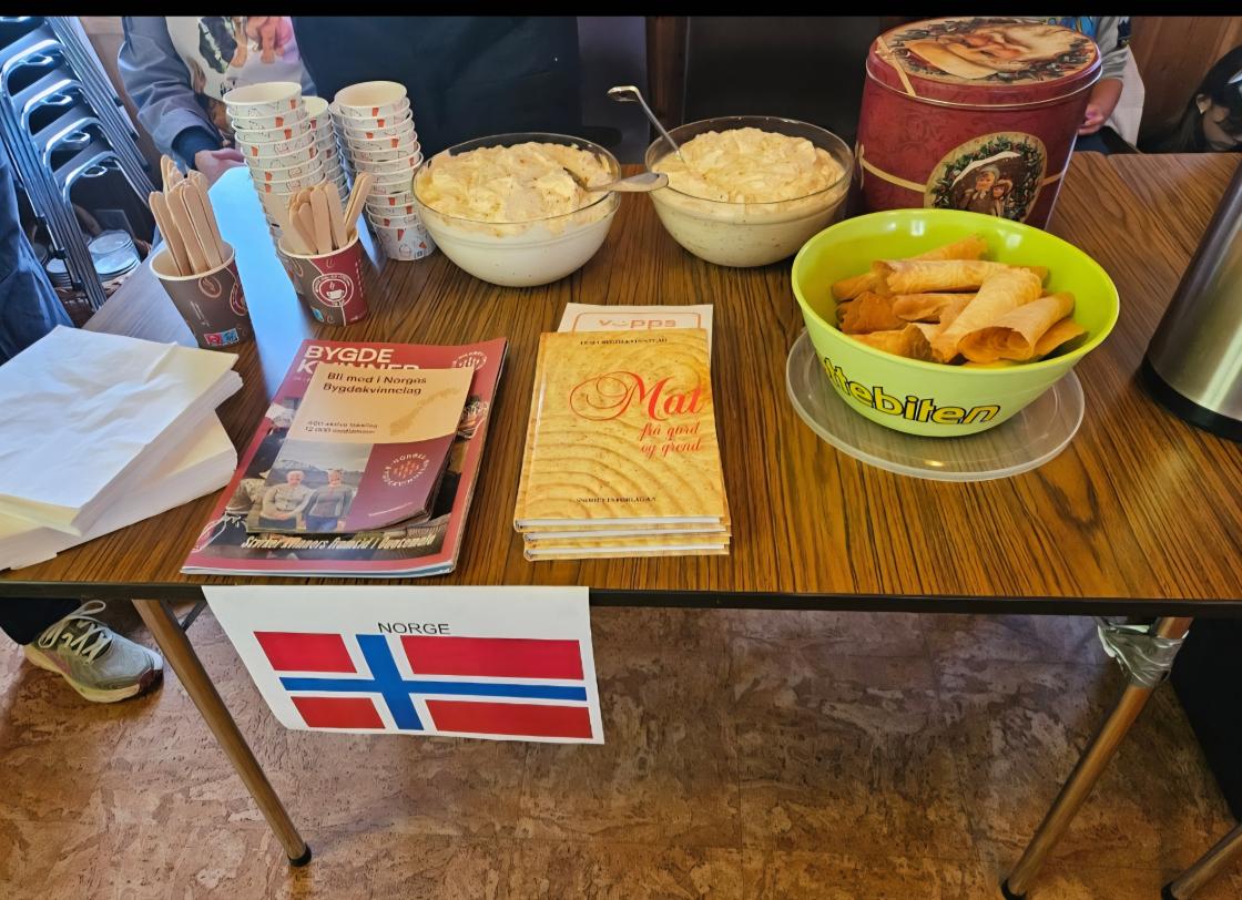 Ingrid og Kari fra Lesjaskog Bygdekvinnelag var sammen med Lesja Bygdekvinnelag på "en smak av Lesja". De serverte moltekrem og skrullo/krumkaker. Det var mat også fra Polen, India, Tyskland og Ukraina. Dette var ett samarbeid med diakonutvalget. Bildene er tatt av Ingrid Fossli