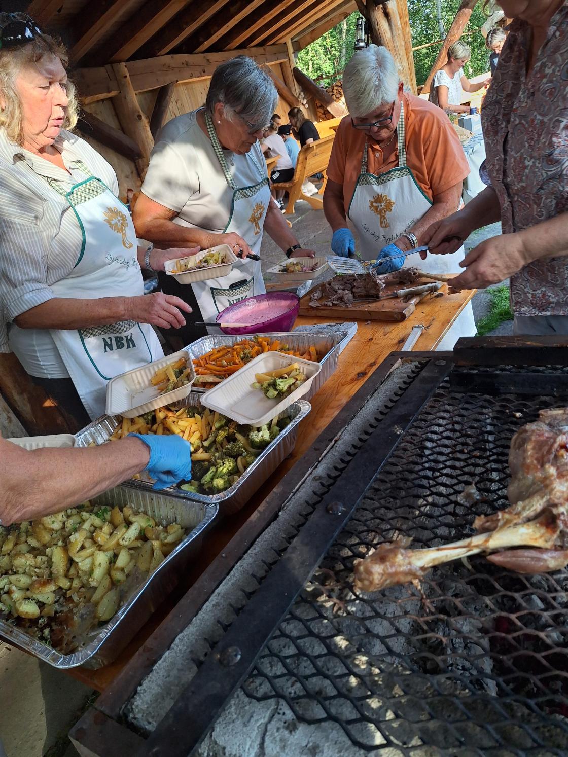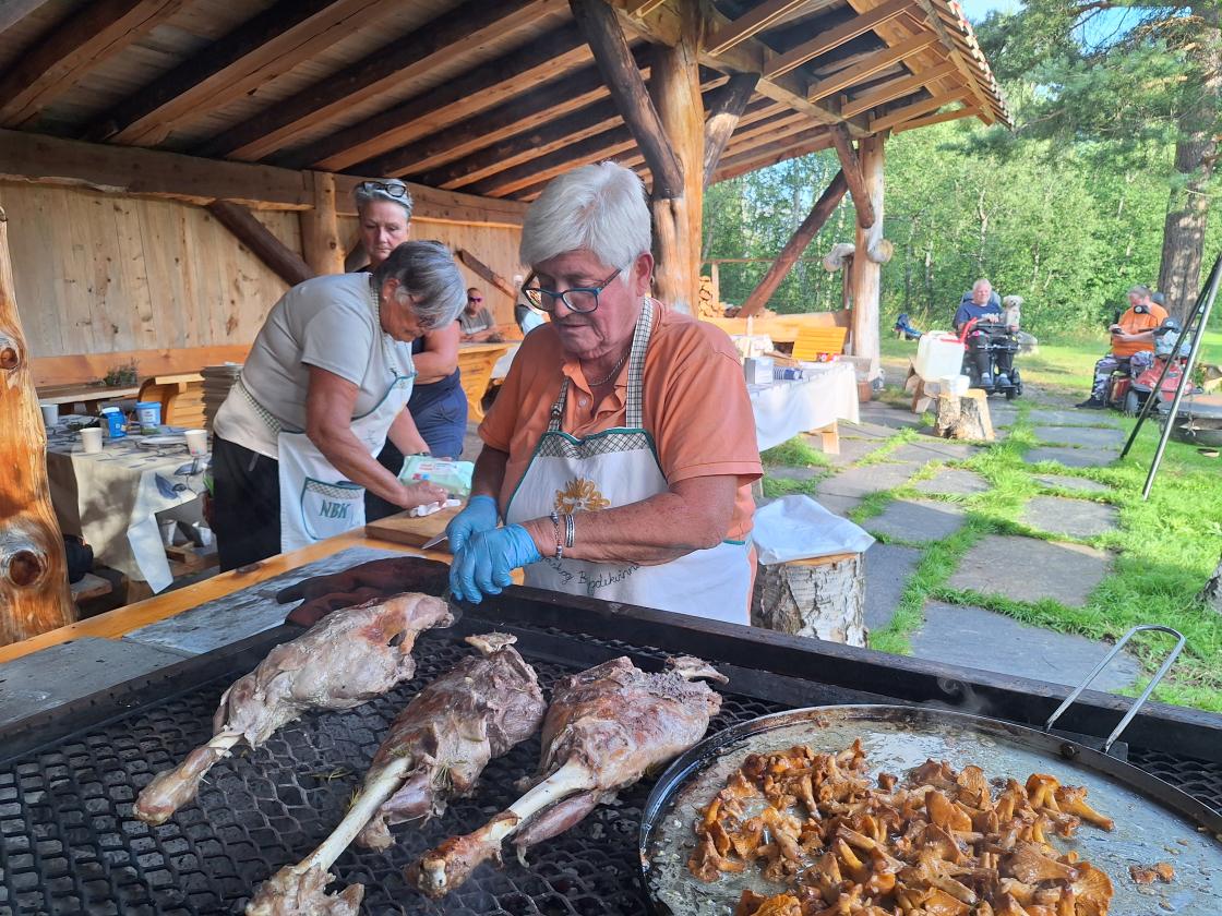 Lesjaskog Bygdekvinnelag samarbeidet med Pål Mølmen på Øyom event, med en kveld der aktivitet og mat stod i fokus. Pål viste frem sine aktiviteter fotballgolf og friesbee, de som ønsket kunne prøve seg. Vi lagde gropekokt lammelår med årets grønnsaker, potet, kantarell og tytingrømme. Deretter bålkaffe og hjemmelagde kaker. Over 40 personer deltok. Været var på vår side med sol og 20 grader. Ivrige bygdekvinner stod for nydelig mat.