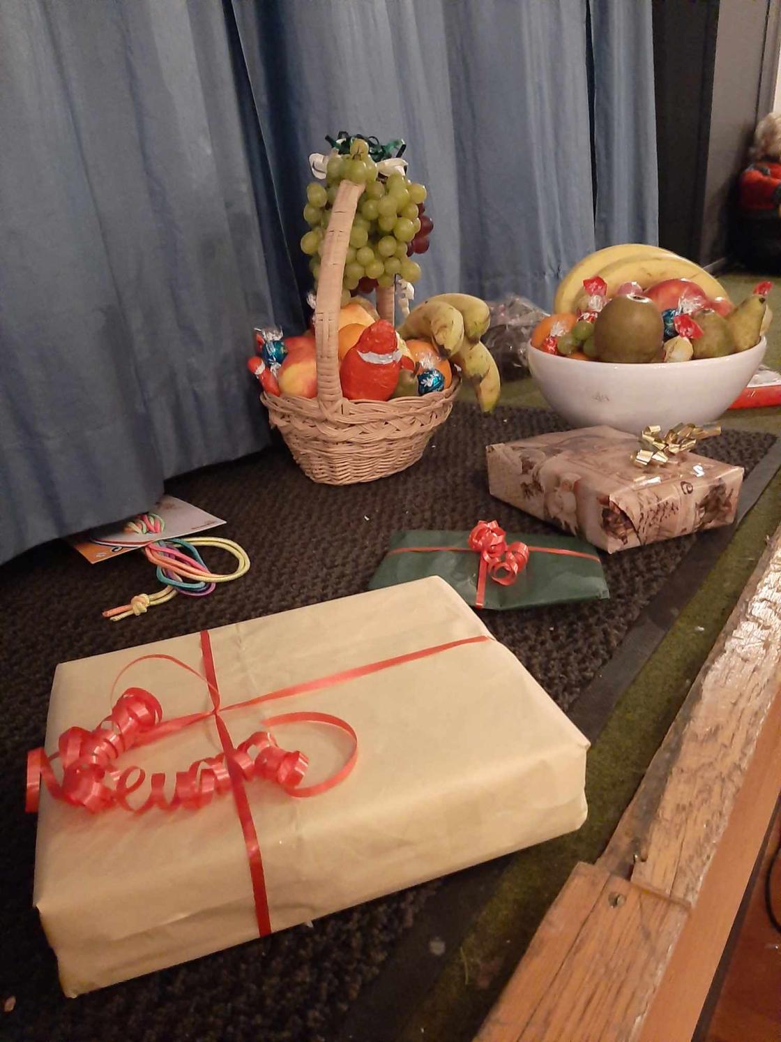 Så var det gang rundt juletreet igjen og da kom også nissen på besøk! Han hilste og pratet med barna og delte ut poser. Tilslutt var det loddtrekning hvor vi hadde mange gevinster, blomster og fruktkurver. Helt til slutt sang vi "Deilig er jorden."