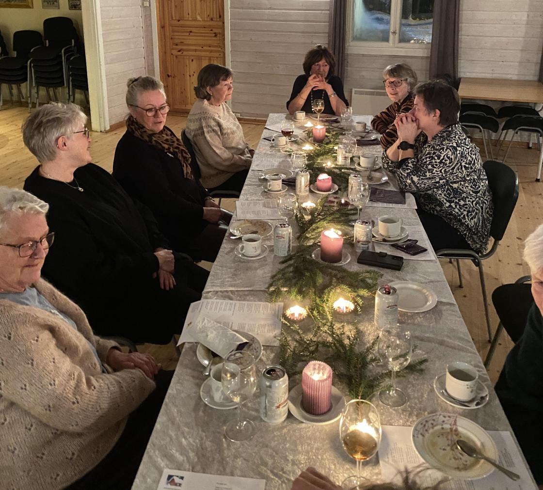 Vi kom til flott dekket bord og vi 10 damene hadde en veldig hyggelig kveld med rakfisk med forskjellig modning og diskusjon om hva som var best. Vi konkluderte med at vi har forskjellig smak! Kvelden ble avsluttet med iskake og kaffe og te og utlodning av de pakkene vi hadde med, så alle dro hjem med en liten gave. Nok en flott kveld med bygdekvinnene.