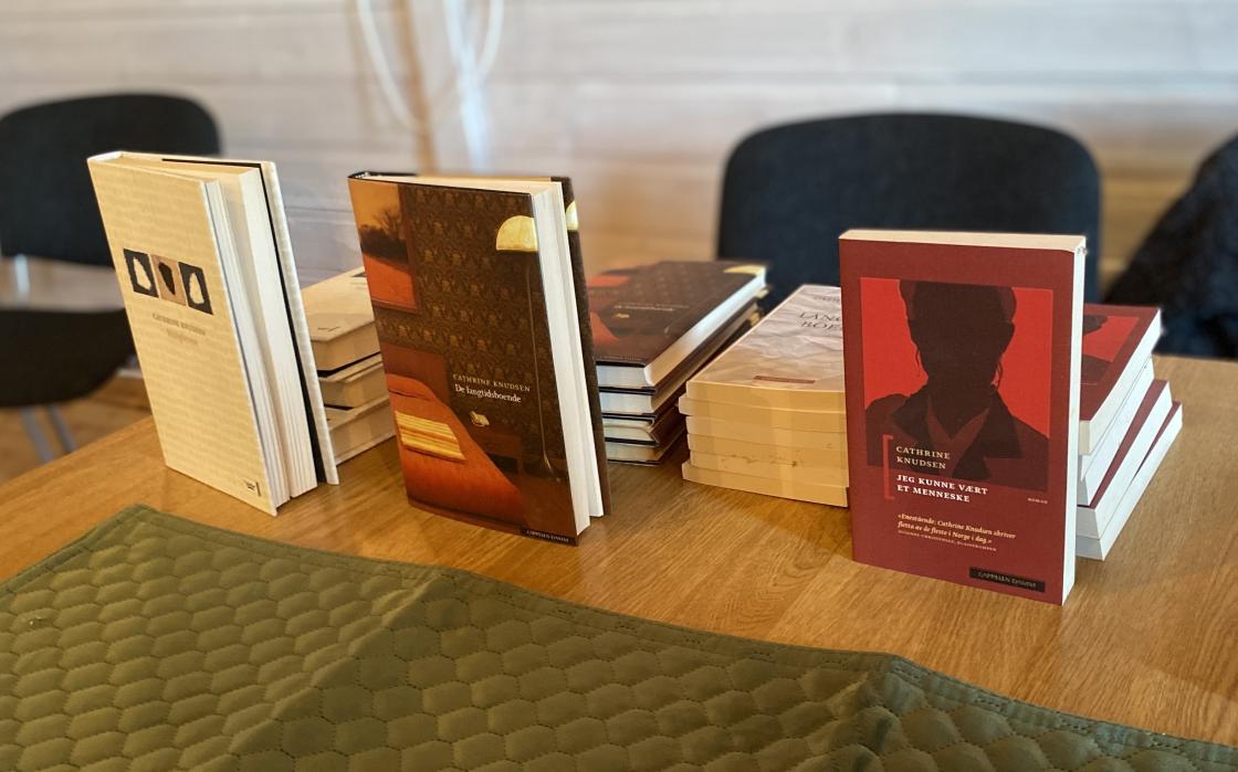 Cathrine fortalte om hvordan det er å være forfatter, ikke så ensomt som man kanskje tror, men man må være disiplinert. Hun fortalte om bøkene sine, hvordan de kom til og ble jobbet frem. Hvordan jobben er opp mot forlagene og de som editerer bøker, og hvordan dette også er personavhengig. Hun hadde også bøker med for salget. Cathrine avsluttet med å lese ett stykke fra en av bøkene sine.