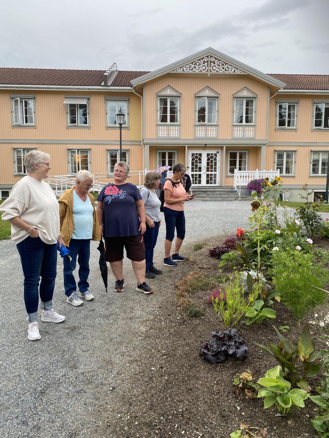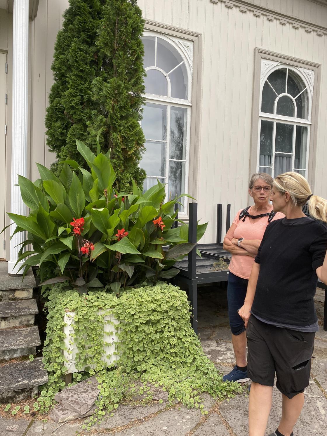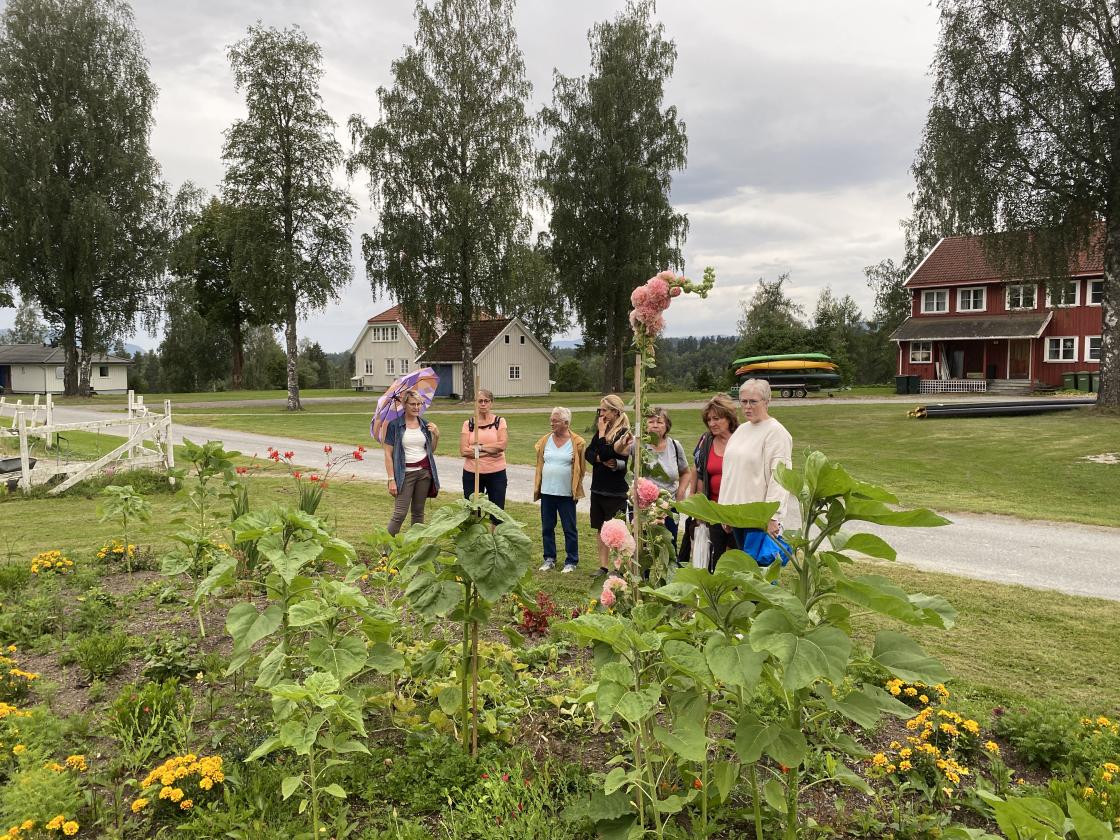 Vi var 8 bygdekvinner som møtte opp for en visningsrunde rundt på Modum Bad av den ene ansatte gartneren. Selv med varm tørr forsommer så var det flere blomsterbed noen mer preget av værforholdene enn andre. Det er flotte områder på Modum Bad med hus, gress og blomsterbed og frukttrær som vi hadde litt «epleslang» (med tillatelse) i. Hyggelig runde med flere forslag ti egen blomsterdyrking. Vi fortsatte kvelde med runde i en privathage til en av våre medlemmer med like flott blomstring.
