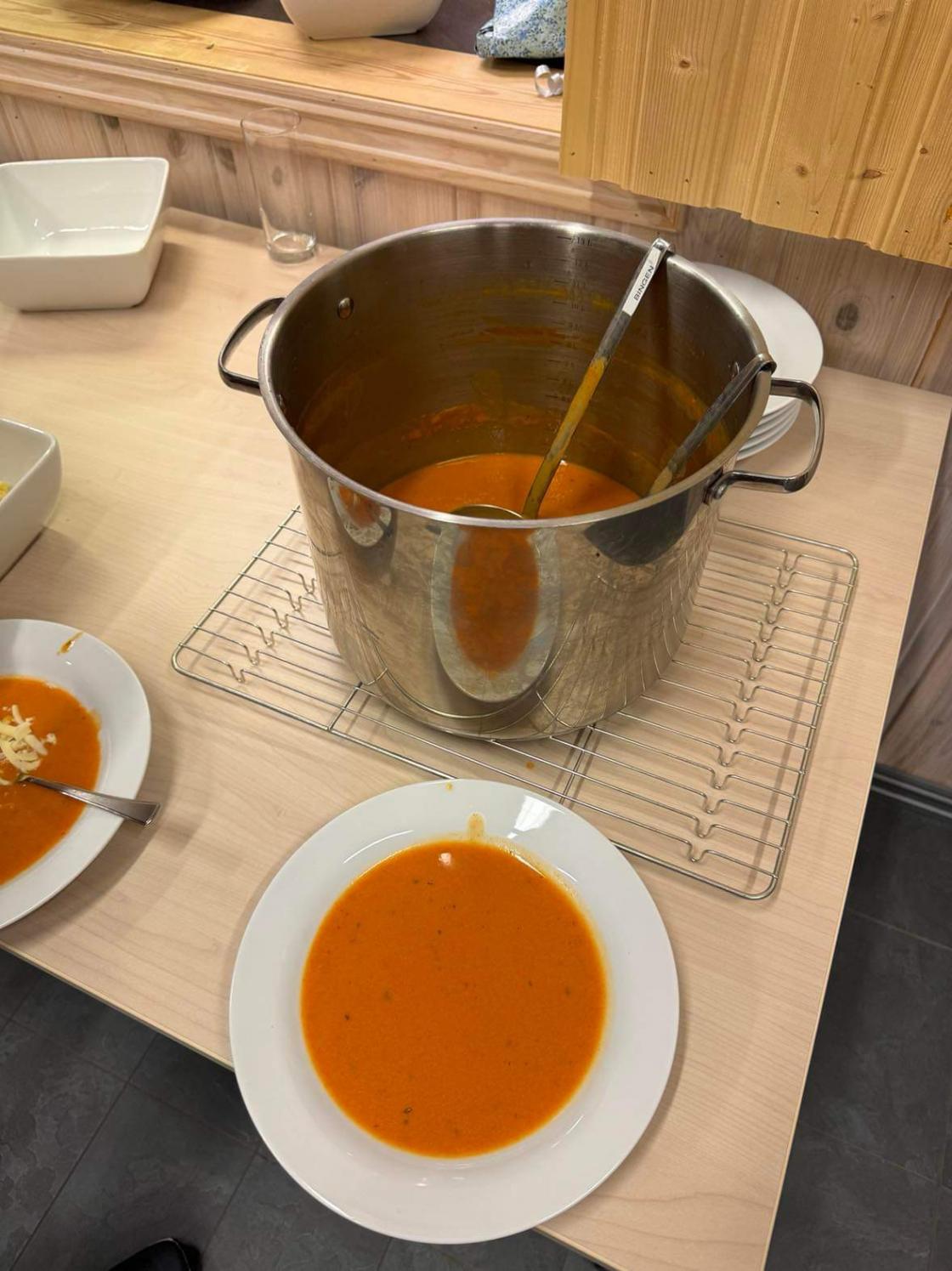 Det ble også servert tomatsuppe, før alle vendte nesen hjemover en sen tirsdagskveld
