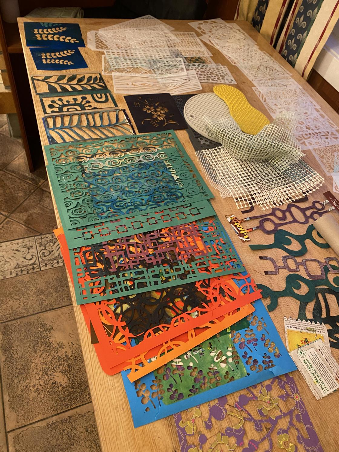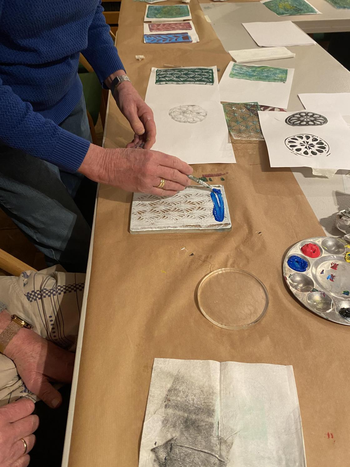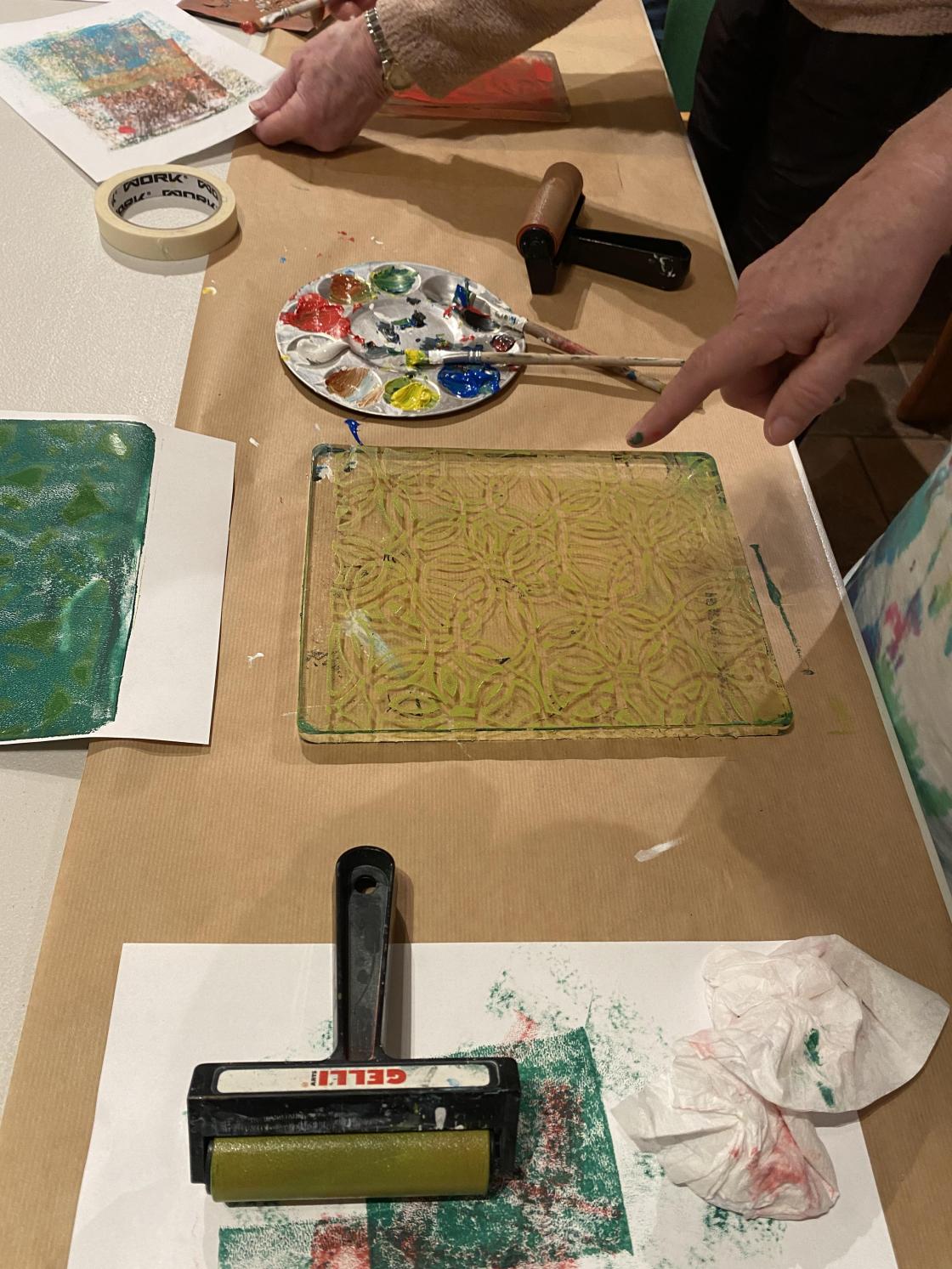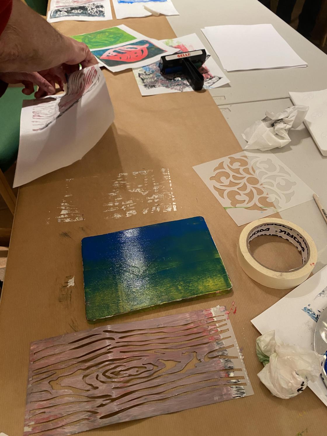 Gelliprinting viste seg å være veldig gøy. Det ble laget bilder, kort og bokmerker.
