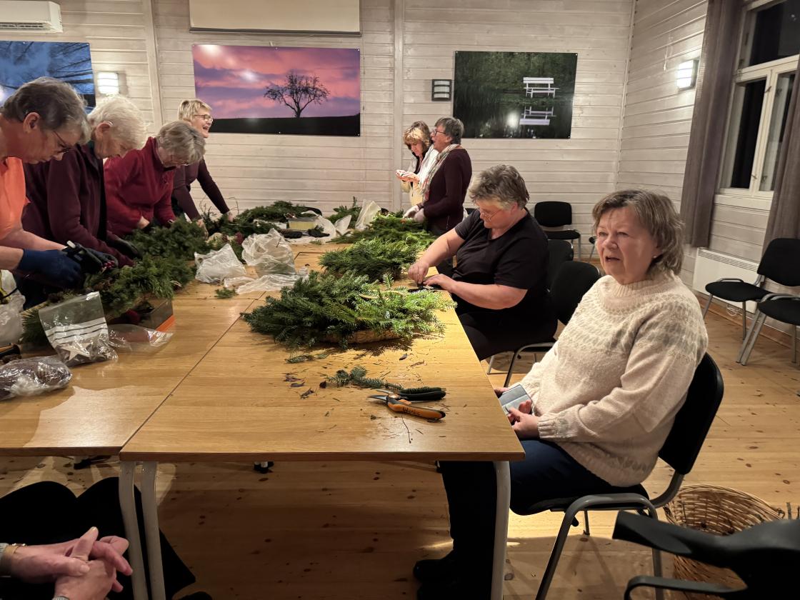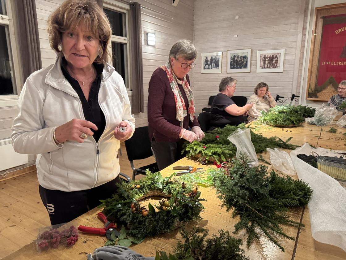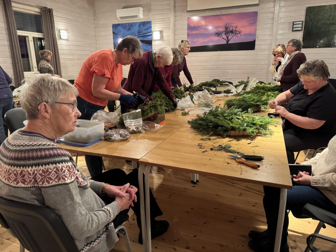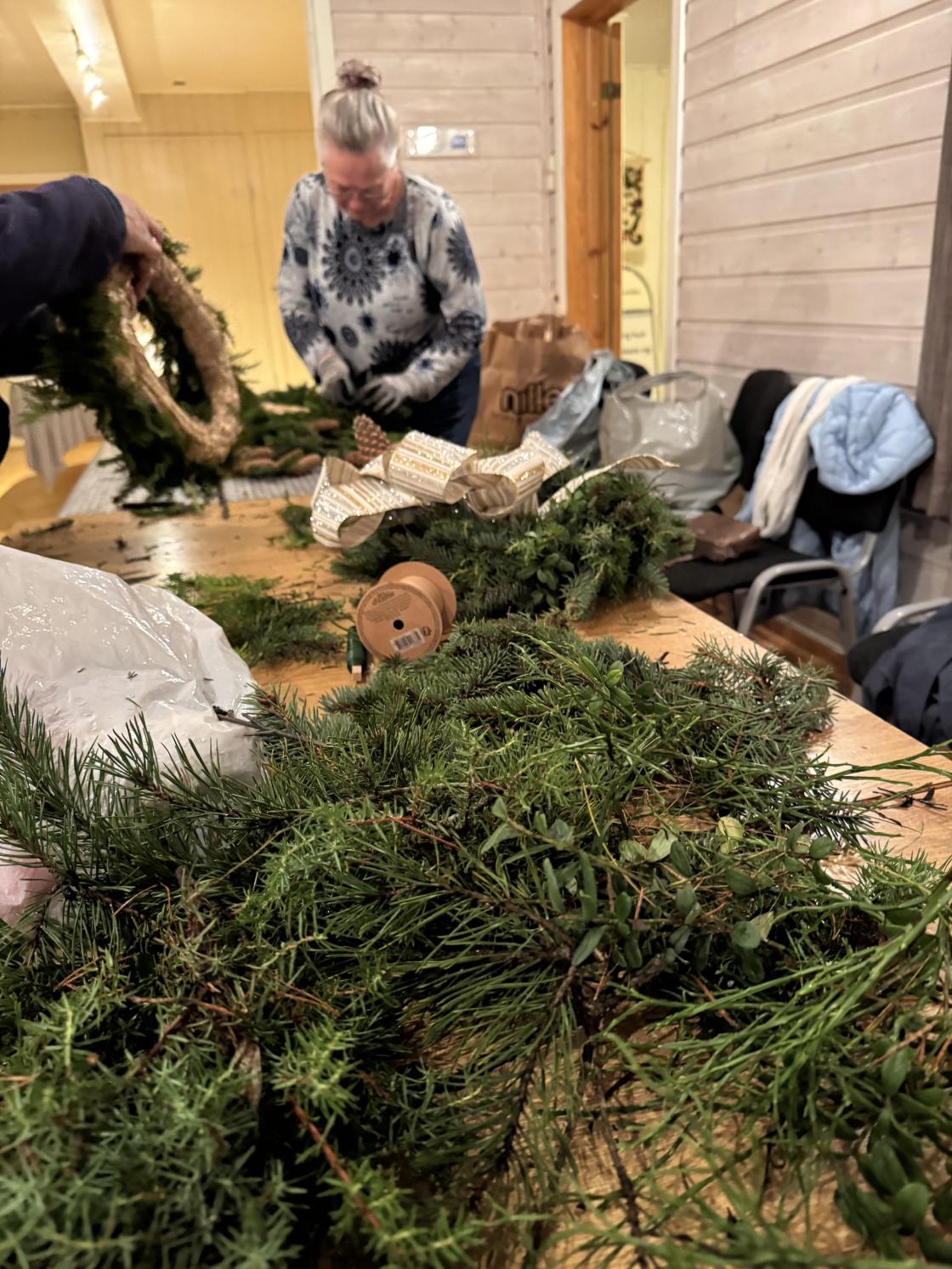 Det ble laget 14 kranser en torsdagskveld!