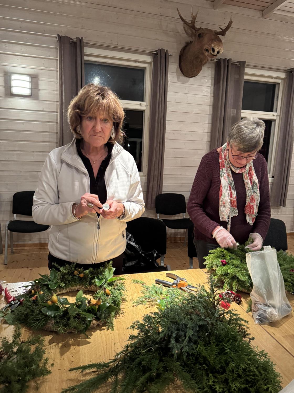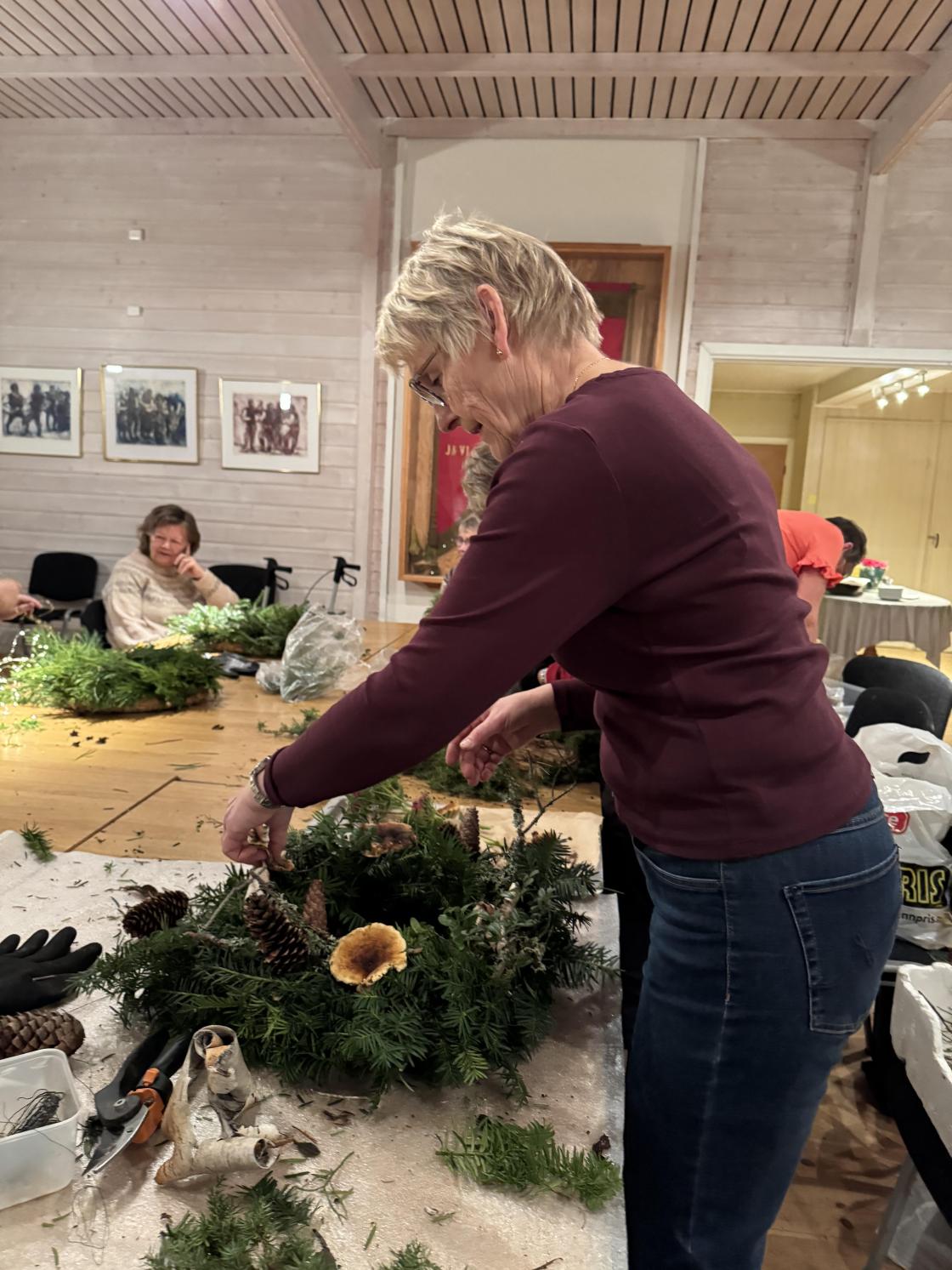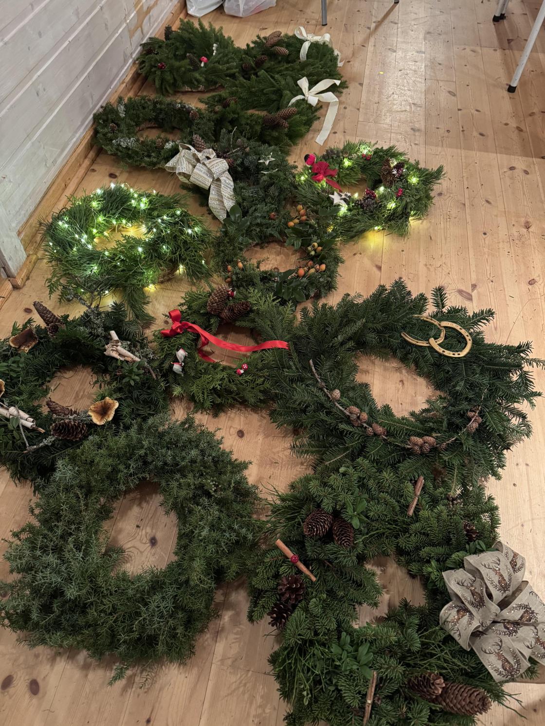 Det ble laget 14 kranser en torsdagskveld!