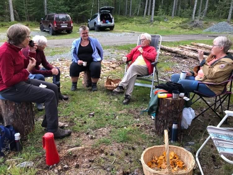 Dagen ble avsluttet med kaffe og kake som Britt hadde med og en god prat før alle dro hver til sitt med sopp!