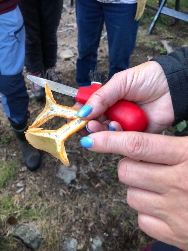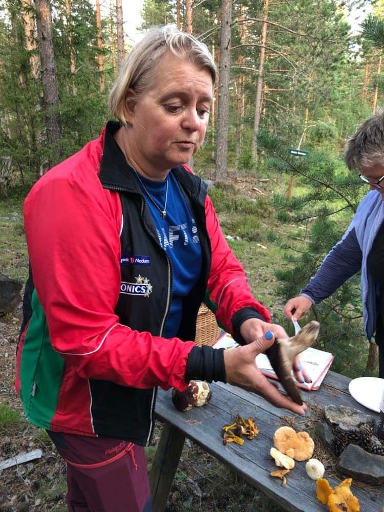 Etter litt intro gikk turen ut i skogen for å finne sopp. Marianne Pedersen og Kristin Kile Andersen guidet og var «lærere» om sopp.