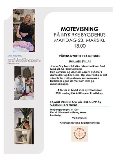 Vi gjentar suksessen fra i fjor og får besøk av Holmestrandbutikken Smil med Stil AS som viser oss vårens moter.