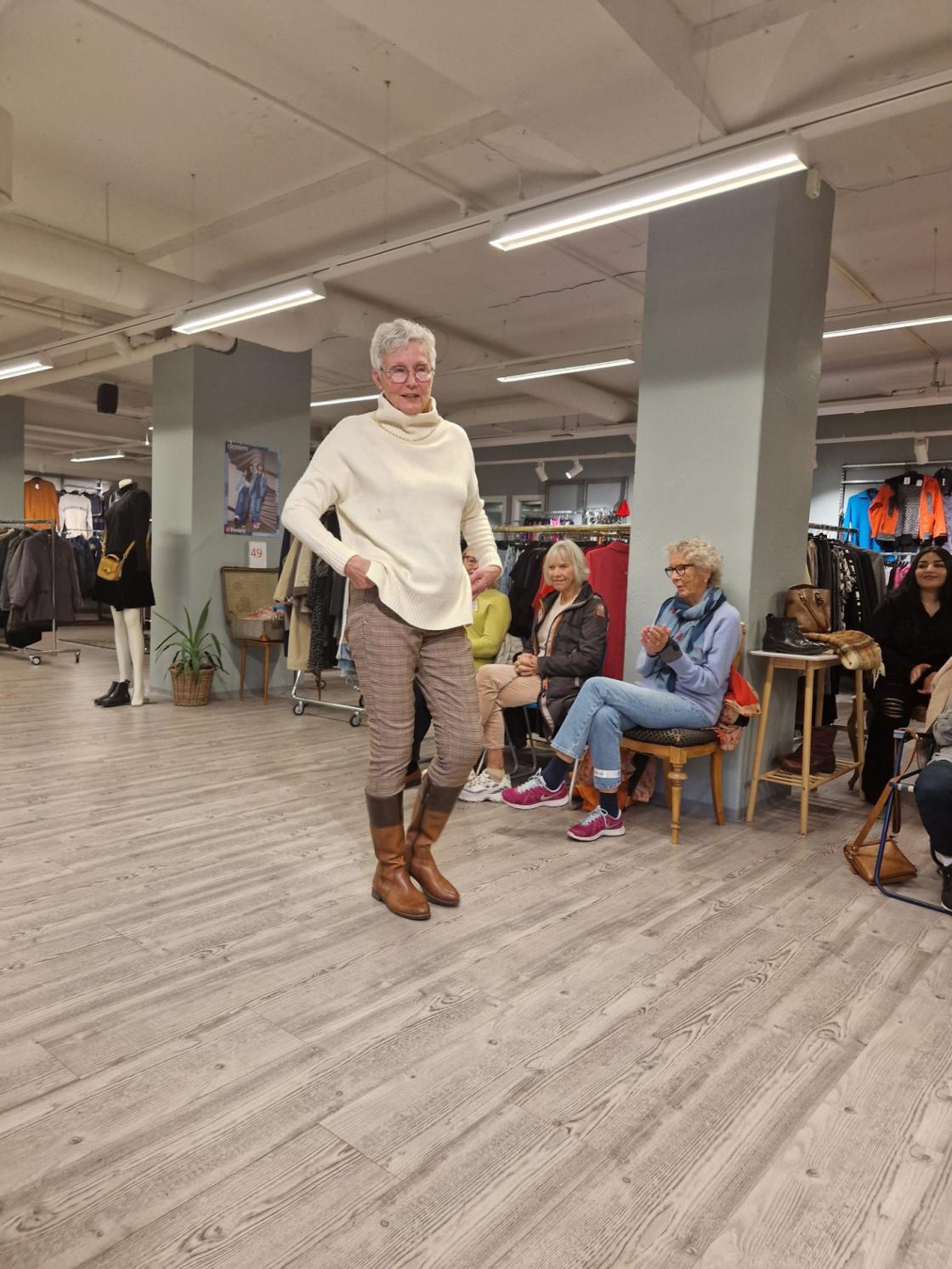 Over 20 damer møtte opp i Fretex butikken i Tønsberg for å få en moteoppvisning av butikkens utvalg av klær, sko og vesker. Vi ble tatt godt i mot av de ansatte og daglig leder Katharina Grønmyhr orienterte om filosofien og hvordan de gjorde brukte klær til ny mote. Fire av våre flotte Nykirkedamer hadde tatt på seg jobben som mannekenger og viste fram et lite utvalg av butikkens utvalg. Dette ble en flott kveld og flere gjorde nok svært gode kjøp i etterkant.