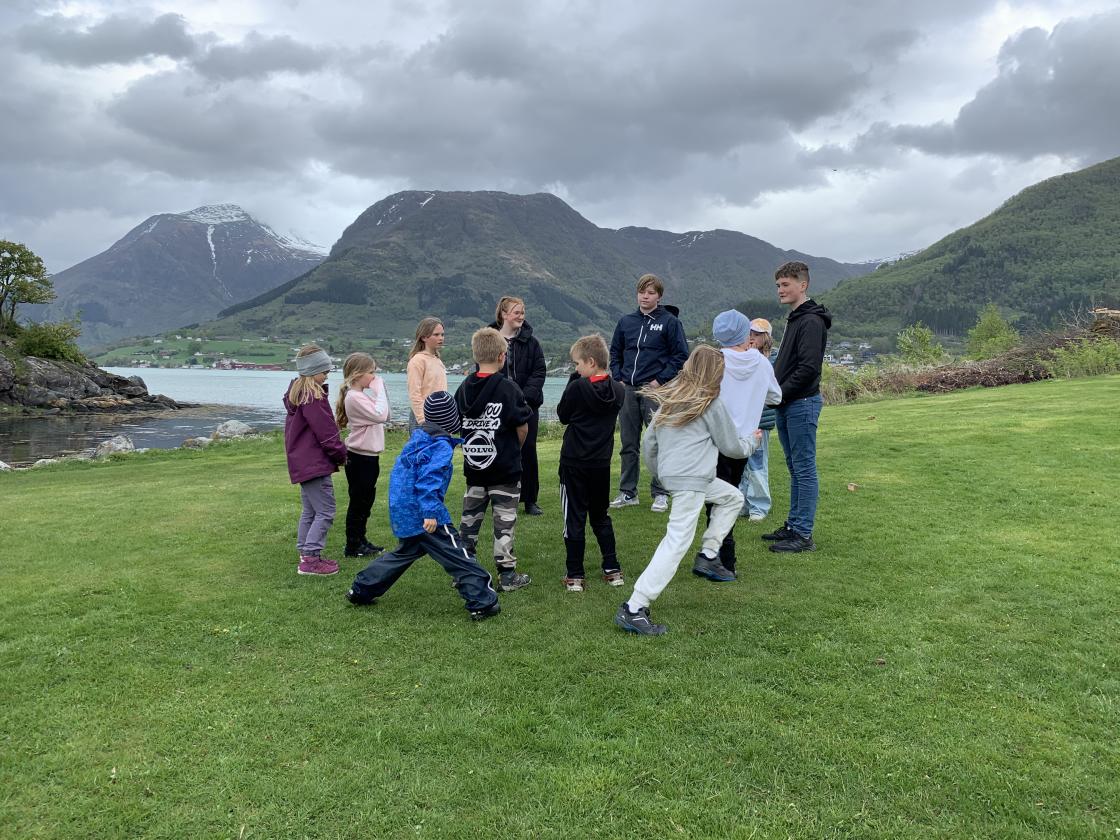 Lauvsprett 4H og Bygdekvinnelaget hadde invitert born fra 1. til og med 4. klasse fra skulane i Omvikdalen og Rosendal til sosialt samvær og leik på Holmen.
