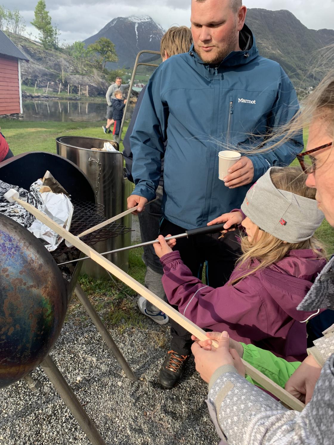 Innbakte pølser smakte godt, men mest populært var det nok med Smores. Lurer du på kva det er? Grilla Marsmellows som vert servert mellom 2 kjeks og ein sjokoladebit😋