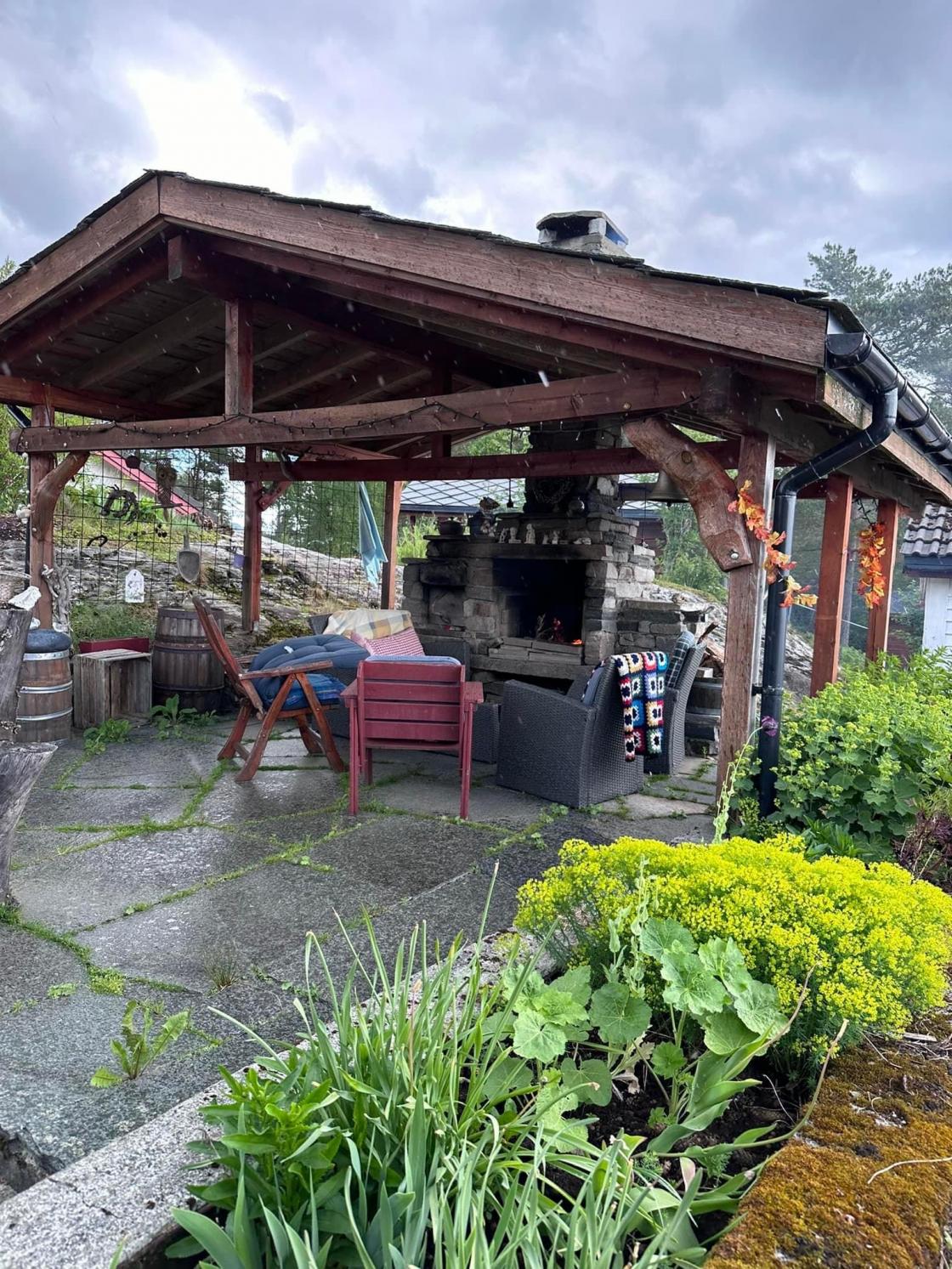 Ho fortalde om arbeidet med å byggje opp hagen, frå skog til småbruk. Spanande å sjå og høyre kva dei har fått til.