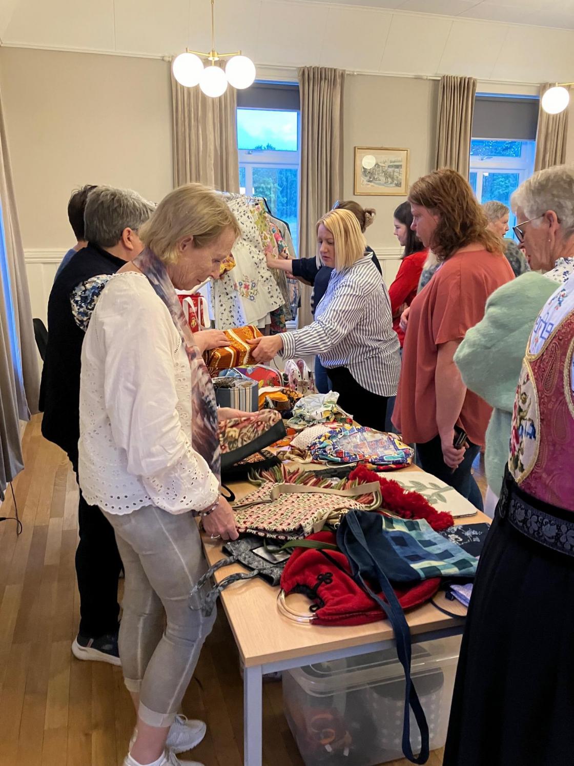 Det ble en fantastisk hyggelig kveld mandag 26.august da leder June Vallestrand kunne ønske 36 forventningsfulle damer velkommen til Kolberg. Kveldens foredragsholder Gro Nordby fra Vestby er virkelig en kreativ tusenkunstner og for et fyrverkeri av en dame. Her var det ikke snakk om bruk og kast og hun viste fram et stort utvalg av redesignede produkter. Sengetøy, gardiner, duker, skjorta til kællen, gamle broderier, ja alt kan få nytt liv. Det var nok mange som boblet over av inspirasjon etter foredraget og kunne tenke seg å lære mer, så vi har et håp om et kurs med denne engasjerte damen over nyåret. Som vanlig på et møte ble det lagssaker, bevertning og utlodning med mange gevinster. Vi takker for et inspirerende og hyggelig møte.