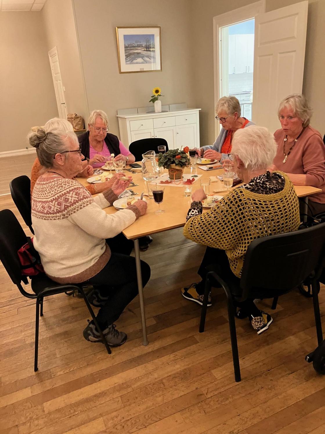 Mandag 25.september kunne leder June Vallestrand ønske 33 blide damer velkommen til et møte med mye hygge og kos.Hun startet med å åpne en gave laget fikk av Onsøy menighetsråd som takk for pynting av kirken og solbollebakst til kulturkvelden i Onsøy kirke. Innholdet viste seg å være to konfektesker, så det passet jo bra til kveldens kaffeservering. Elin Solerød var meget involvert i pyntingen av kirken, så June overrakte henne en påskjønnelse som takk for innsatsen. Laget ligger jo ikke akkuratt på latsiden så det ble tatt opp: grøtservering Slevik skole, strikking Manstad skole og basaren vi skal ha 10.desember, og i tillegg kunne June nevne at ØBK ønsket å sende to personer fra to lokallag (4 personer) til inspirasjonsseminaret i Stavanger 10- 12.november. Laget vårt og laget fra Aremark ble trukket ut og fra oss reiser Hilde Magnussen og Karine M.Nymark. Leder av husstyret Inger Marie Forsetlund kunne så informere om at Bøndenes hus har mye utleie, men for å kunne drifte huset trengs det penger, så tradisjon tro vil det også i år arrangeres førjulsmiddag. Dette vil skje søndag 3.desember og de vil nå gå tilbake til at medlemmene steker ribbe hjemme (det samme med medisterkaker) og de som ønsker å bidra med dette skal få det levert på døren. Neste post på programmet var nå å innta godsaker fra ostebordet med både rødt og hvitt i glasset for de som ønsket det, og derved summet det ganske jevnt i lokalet. Summinga stanset brått da vi fikk besøk av «Glatte Kjakær», og spørsmålet var da: hvem er dette? Jo, det er en acapellagruppe bestående av 4 staute kjekke karer med flotte stemmer : Hans Olav Nymark (lerka fra Ørmen), Tommy Svendsen fra Gressvik, Paul Langgård fra Slevik (han som bærer bagasjen), og Øivind Frøslev fra Fredrikstad. Vi ble vitne til en variert, morsom og fin konsert, og damene koset seg glugg, og som sant skal sies er det artig å høre slik imponerende stemmebruk. Etter konserten var det klart for quiz og det ble servert kaffe, is og konfekt, og en stor takk til kveldens vertinner May Lisbeth Ek og Grete Bossum. Quizen ble en lagkonkurranse og det var June som ledet det hele, og konkurranseinstinktet slo til hos mange, men det laget som vant bestod av Rigmor Martinsen, Bjørg Enghaugen og Britt Møllerhagen. Kvelden ble avsluttet med trekning av loddene og gevinstene bestod av poteter, sellerirøtter, blomster og mye mer.