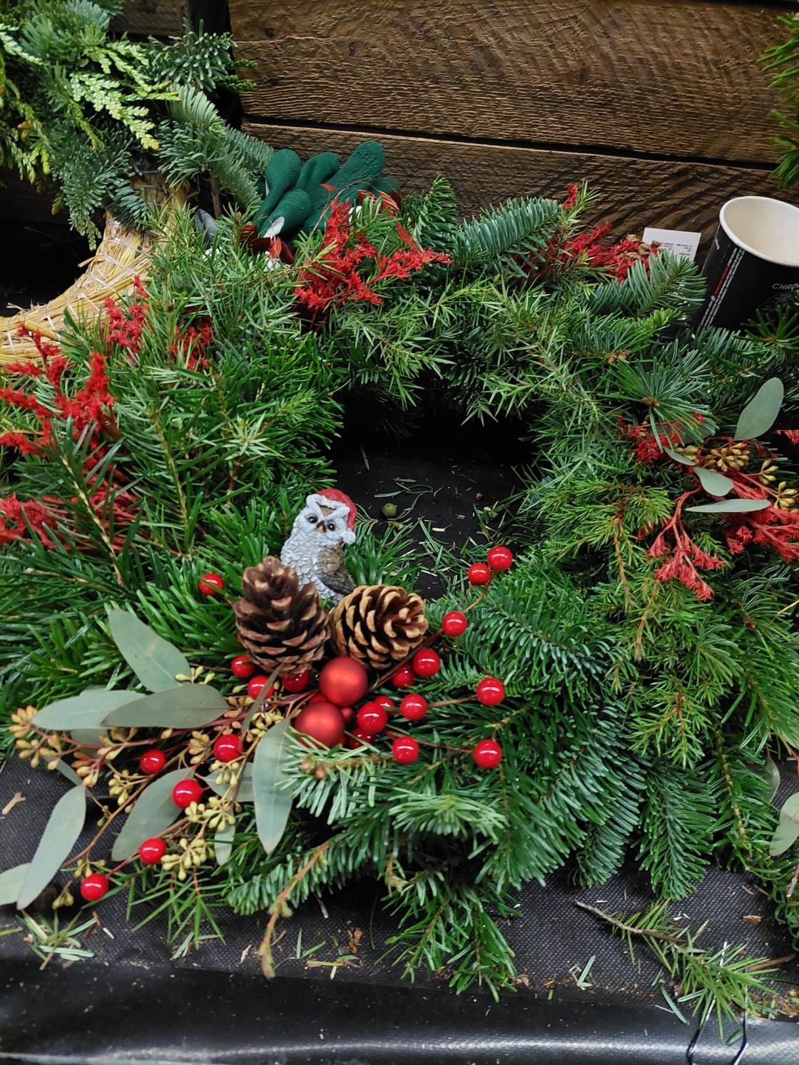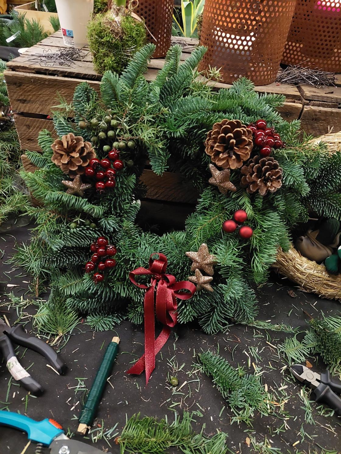 10 store og ein liten deltok på adventskranskurs på Hageland.