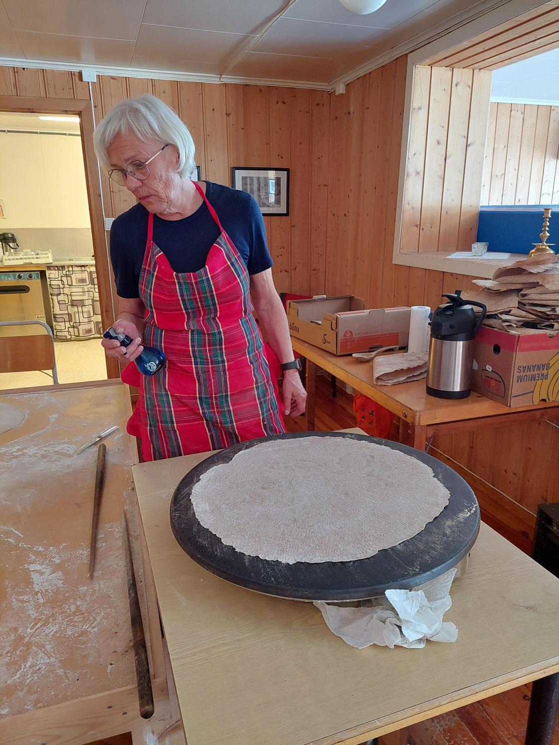 Målfrid laga flatbrødknåa av grov kveite, salt, skumma surmjølk og vatn.