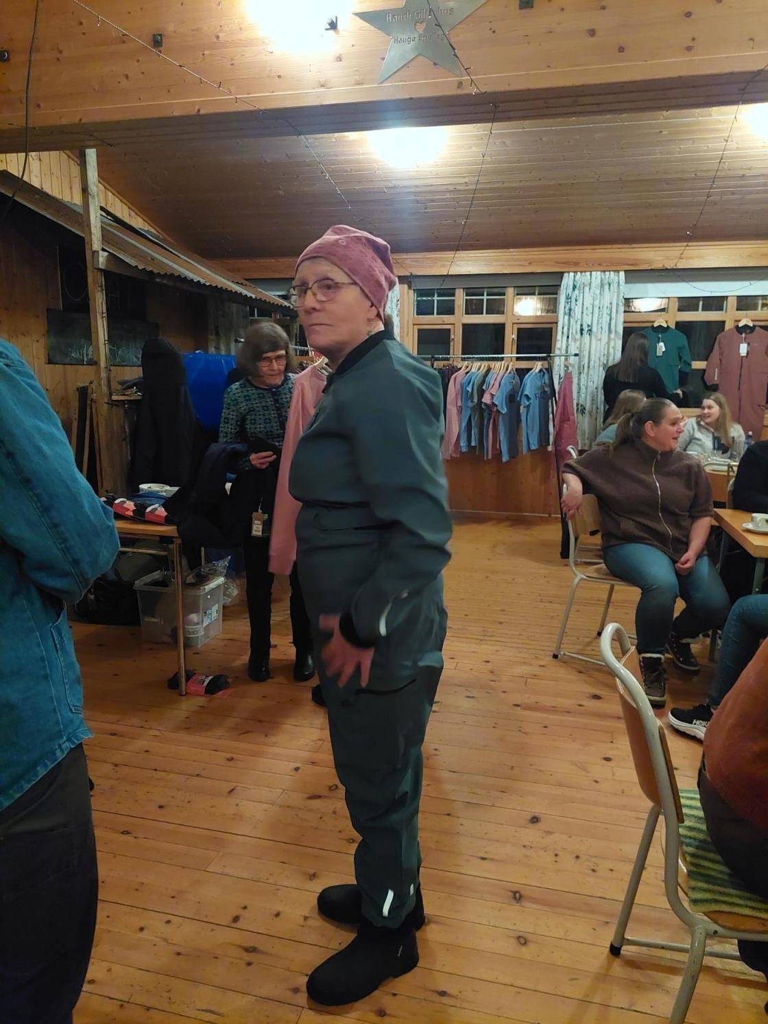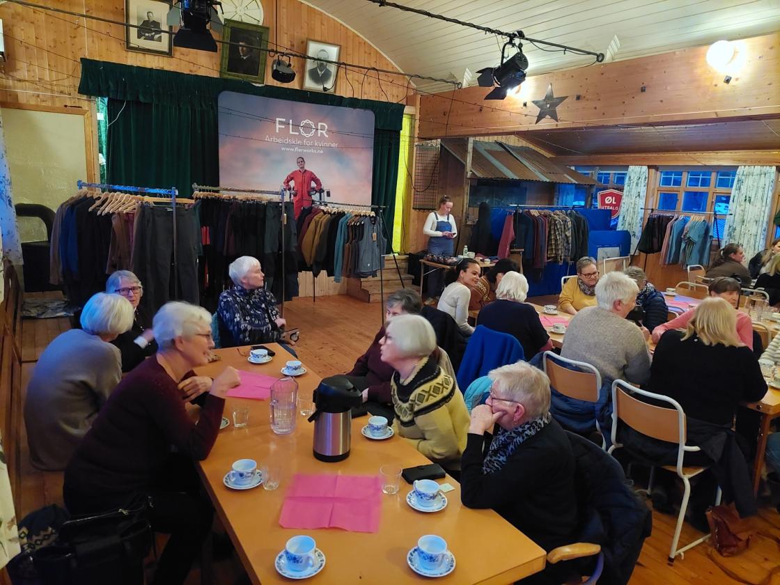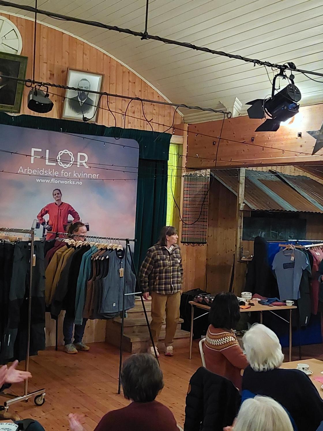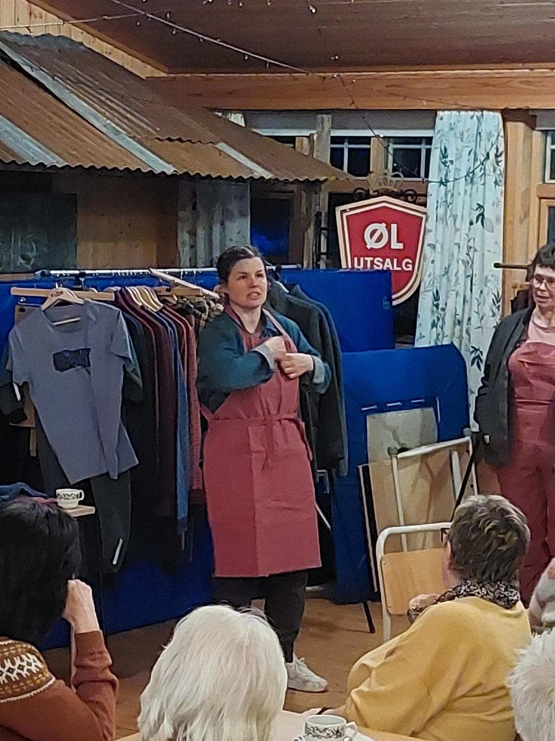 4 damer frå bygdekvinnelaget stilte som mannekengar og viste fram ein del nye og andre godt innarbeida modellar.
