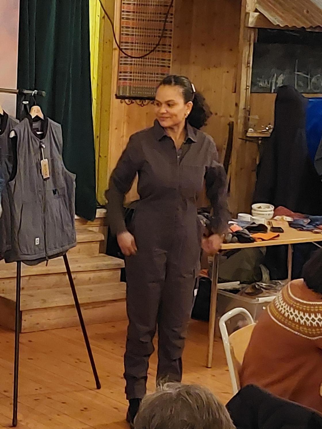 Kristin og Mari frå FLOR hadde rigga opp utstilling av kleda sine.