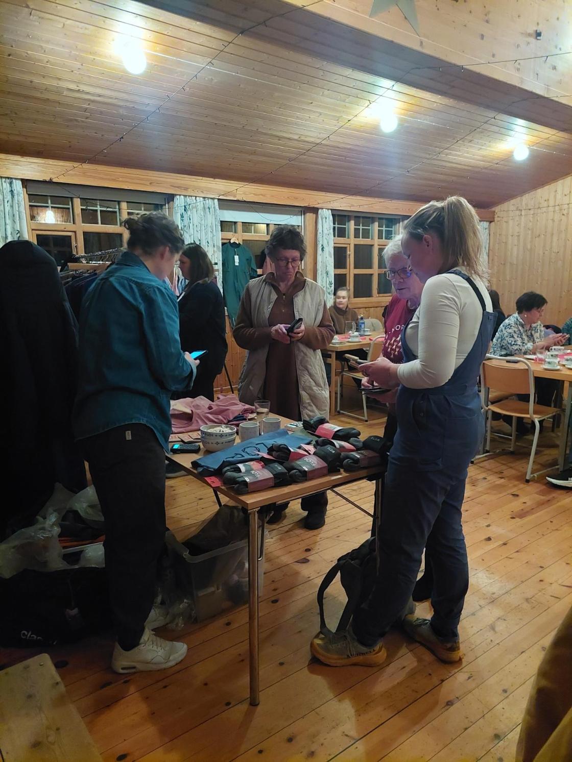 Etter det var det tid for damene å sjå på og prøva kleda, og mange fann noko dei ville ha.
