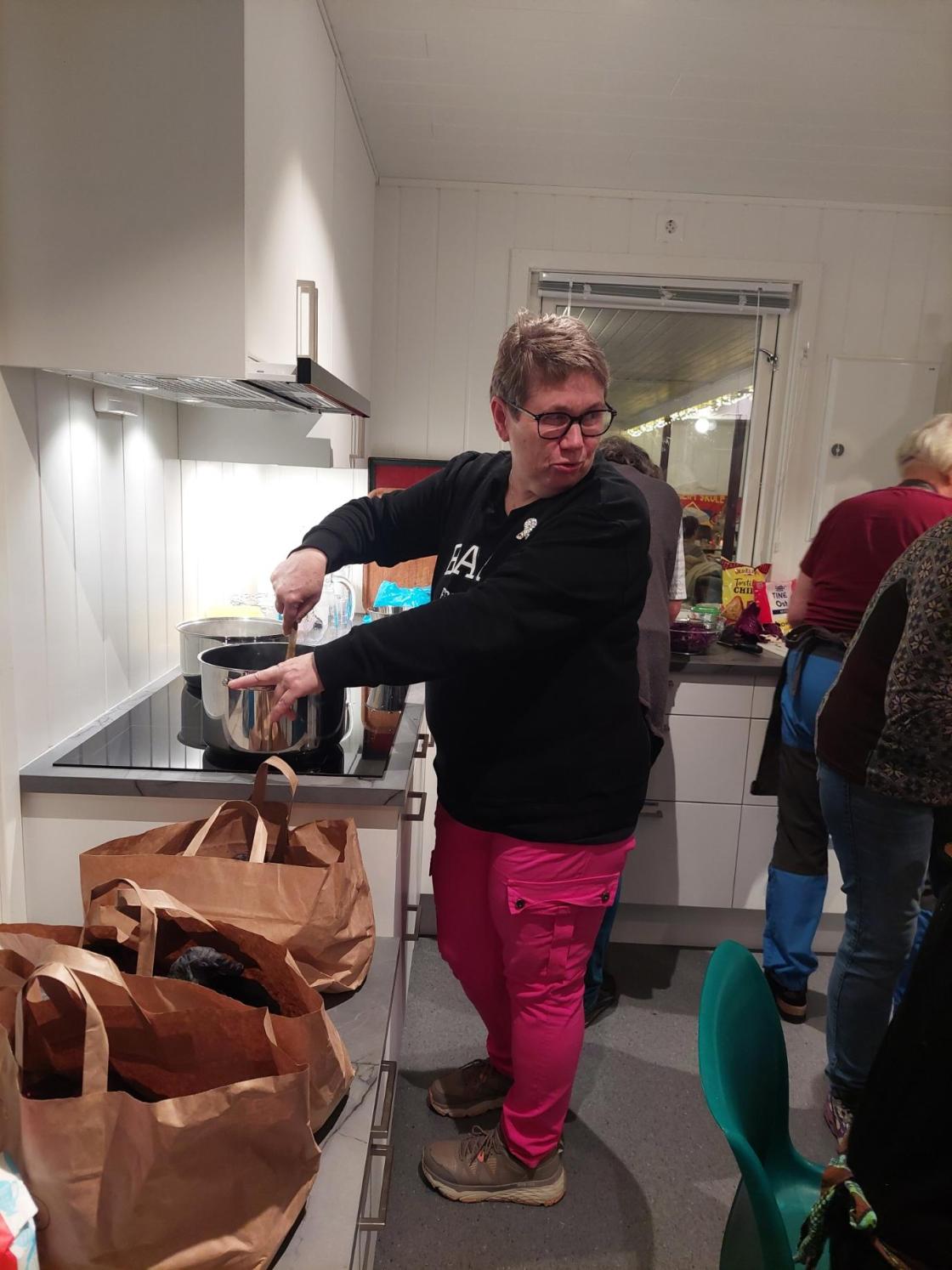 Etter fullført jobb nytte me kjempegod tacosuppe og fromasjkake som Målfrid og Nina hadde laga. Tusen takk for god mat!