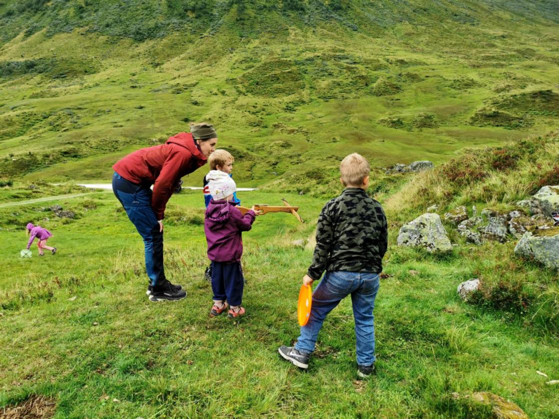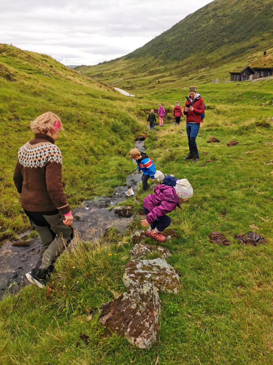 Ungane laga papirbåtar og hadde kappløp i groa. Der fanga dei òg frosk.