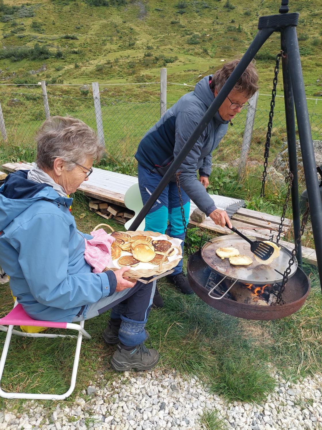 Me steikte lappar og vafler, kokte kaffi og grilla pølser på bålpanna.