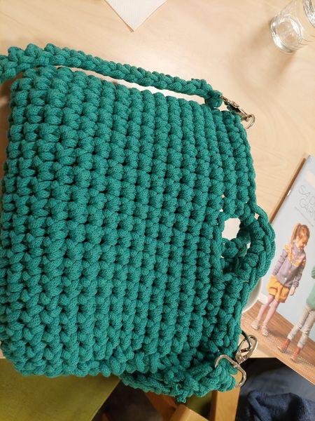 Ei av dei som kjøpte garn på forrige strikkekafe hadde hekla ei flott grøn veske ![]()