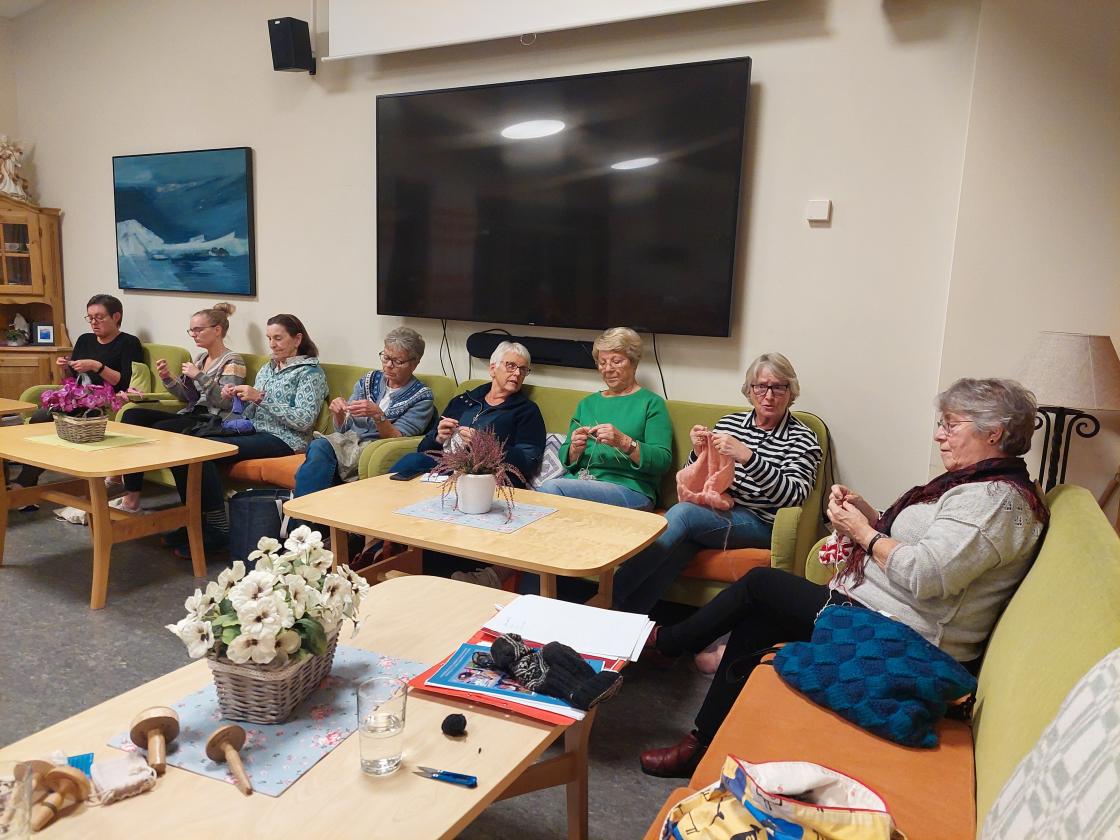 Stopping og bøting av strikkeplagg var tema på strikkekafeen 4. november.