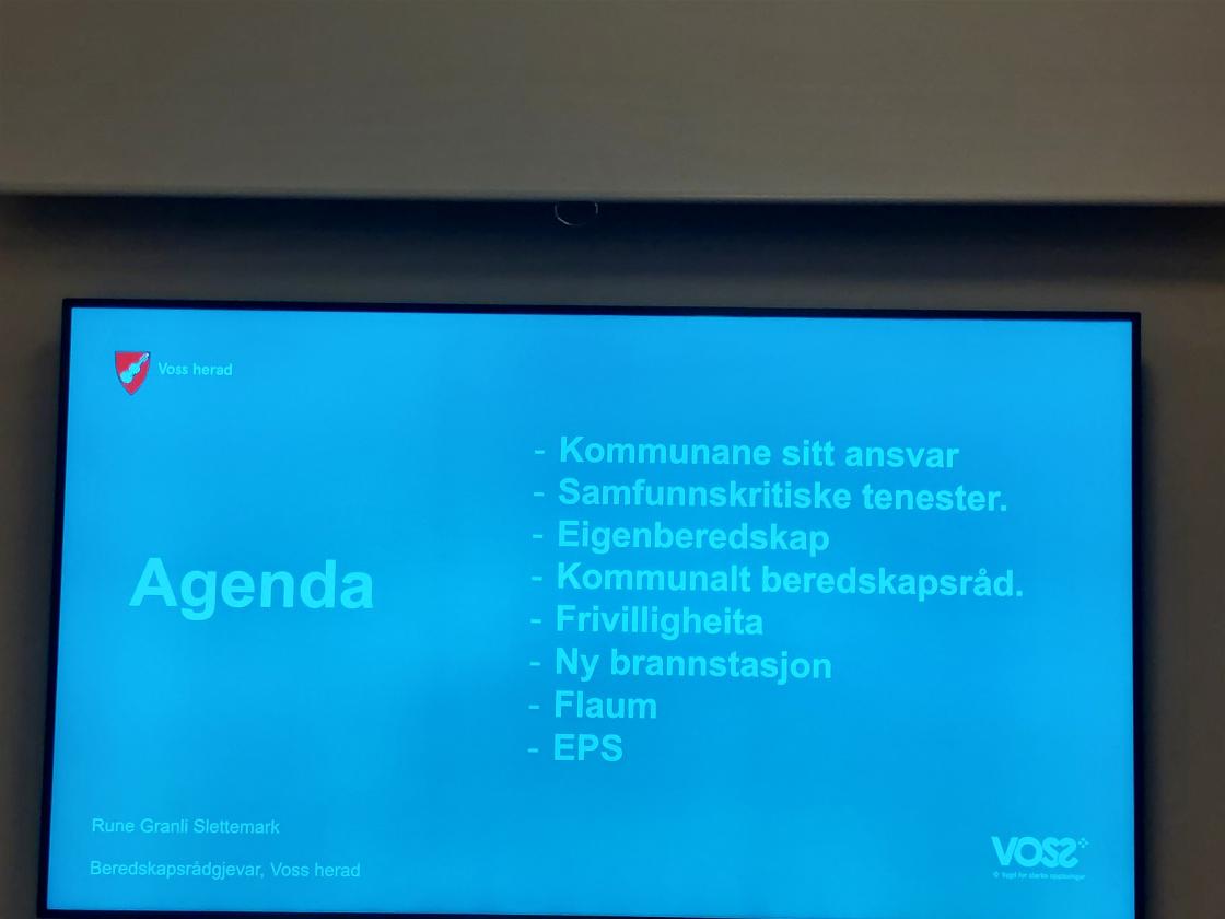 Rune Granli Slettemark som er Voss herad sin beredskapsrådgjevar gav oss ei tankevekkjande og god innføring i korleis me bør tenkja og handla i høve eigen beredskap.