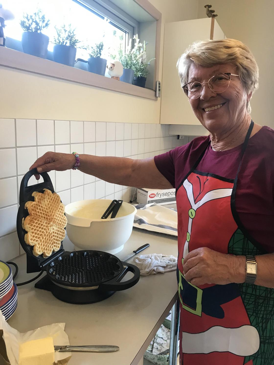 Etterpå var det kaffi med vafler, rømme og syltetøy.