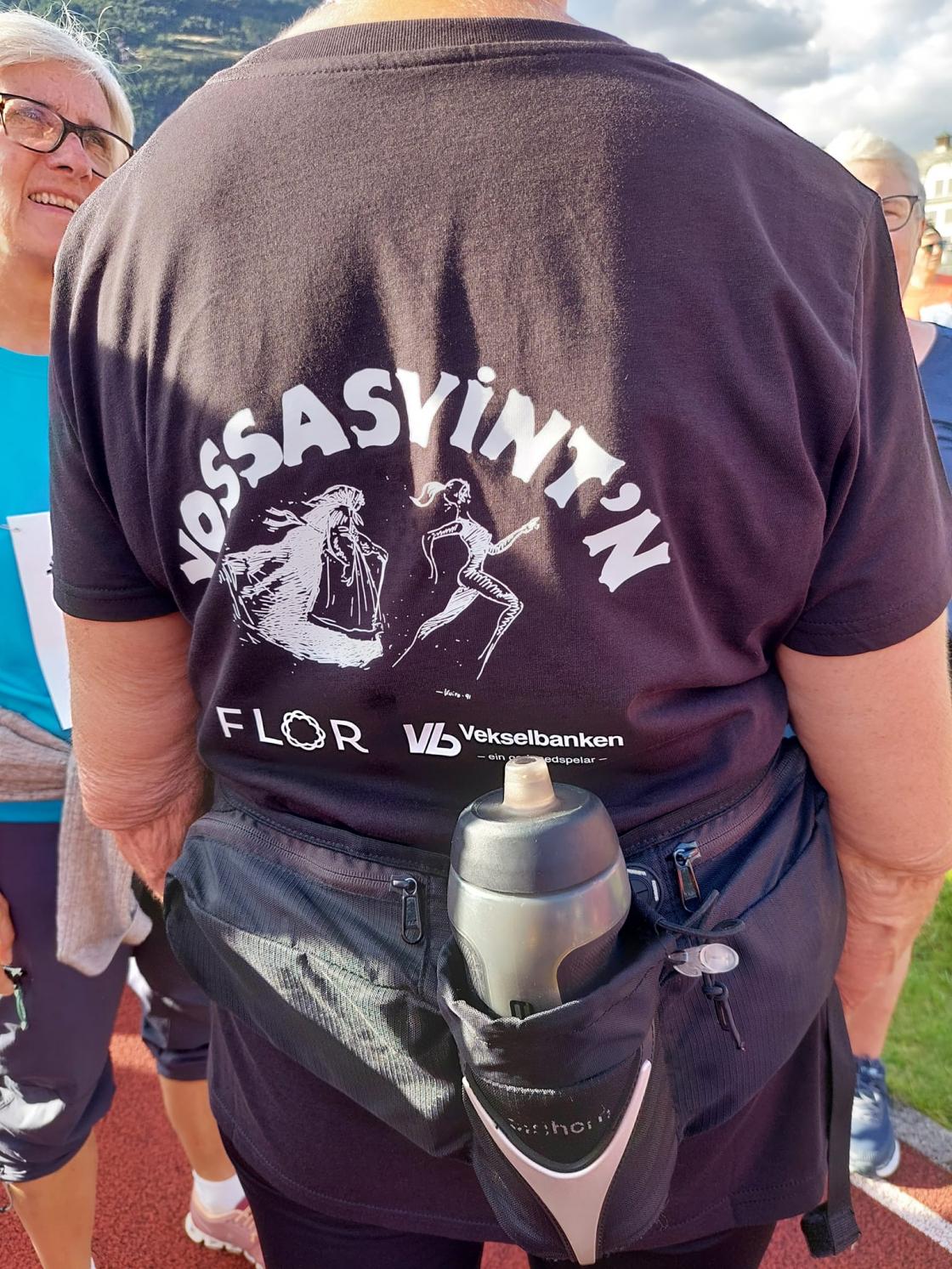 Me ville ikkje dekka over logoen på t-skjorta så me festa nummeret på ryggen