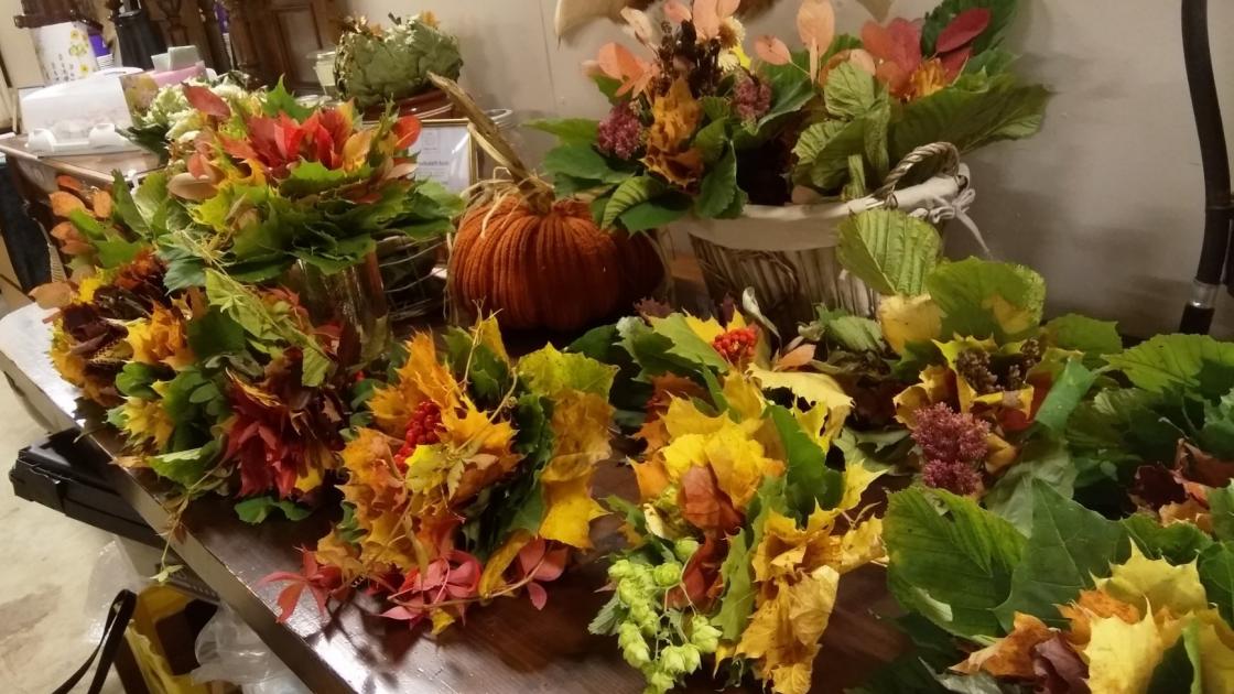 Høsten kom med sine flotte farger. Å binde en lauvbukett er en måte å ta vare på fargene inn i vinteren. Onsdag 29. september fikk vi en innføring i kunsten av Kjersti Aulie.