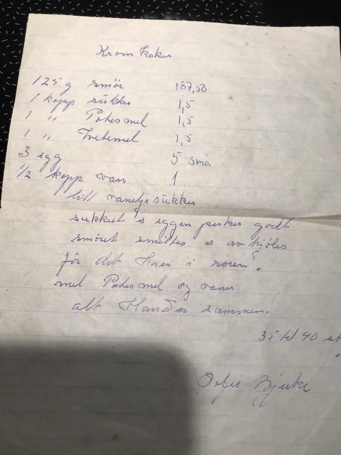 Sofie Bjerke sin oppskrift på "Krom kaker";