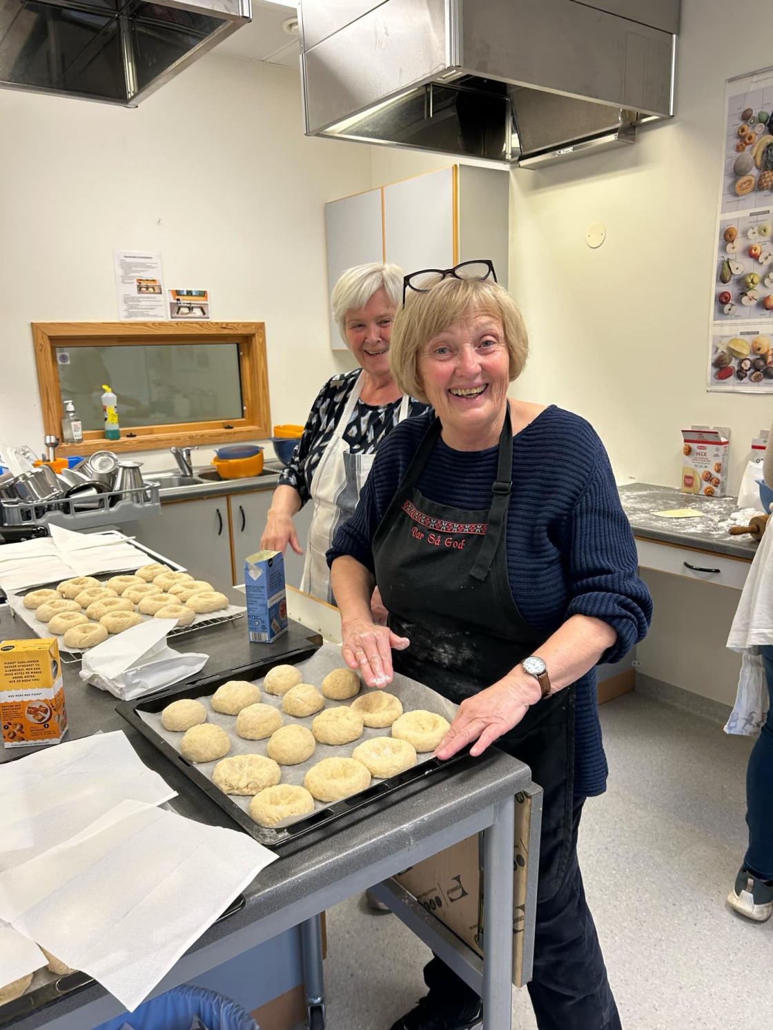 12 bakeklare damer hvor alle fikk prøve seg på skolebrød, fylte horn og kanelsnurrer.