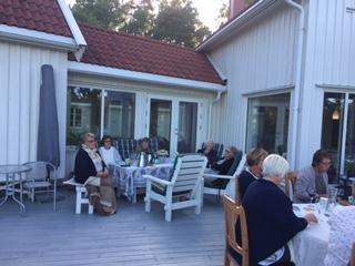 På medlemsmøte den 12.juni, stilte Gerd Louise sin terrasse til disposisjon, på denne fine sommerkvelden. I alt 23 medlemmer møtte opp. Styret ordnet med innkjøp av ost, frukt, vin og andre forfriskninger, som ble satt på bordet til alle medlemmene kom kl.17.