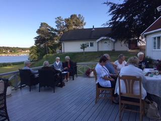 På den store fine terrassen, fant alle den plassen som passet, noen ville ha sol, andre foretrakk å sitte i skyggen, og alle kunne nyte den fine utsikten ned mot Rørvika. Gerd Louise ønsket velkommen, og fortalte om Larkollen og den spennende historien om dette stedet, Rørvik, som er hennes barndomshjem. Det var rikelig med nydelig ost og vin, det ble også allsang til trekkspilmusikk, alle sang med, og stemningen var på topp hos alle! Grete leste opp lag-saker som har kommet siden sist, og ønsket alle en god sommer, og velkommen til høstens møter i RBK.