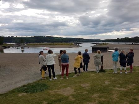 Etter at vi avsluttet toppturen og kom oss ned på landjorda igjen var det tid for og se Mjøsparken som heller ikke alle var kjent med. Det har blitt et utrolig flott sted for folk i alle aldre. Nydelig blomster, masse lekeapparater, skatebane og badestrand. Noen regndråper i lufta gjorde at det var praktisk og kunne sette seg under tak – det var det også rom for. Været tillot ikke et langt besøk, men jeg tror de fleste tenkte at hit vil vi reise en gang til. Da er det bare og vente på finvær og serveringstilbudet og når alle anleggsmaskinene blir borte fra området etter hvert som park og nye E6 blir ferdig – da blir det et utrolig flott sted for oss alle i kommunen.