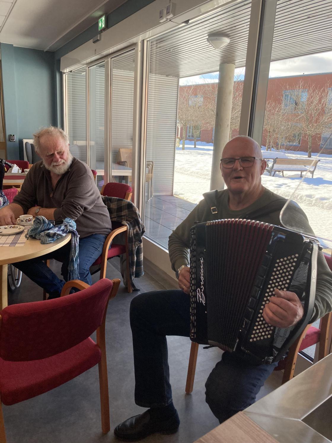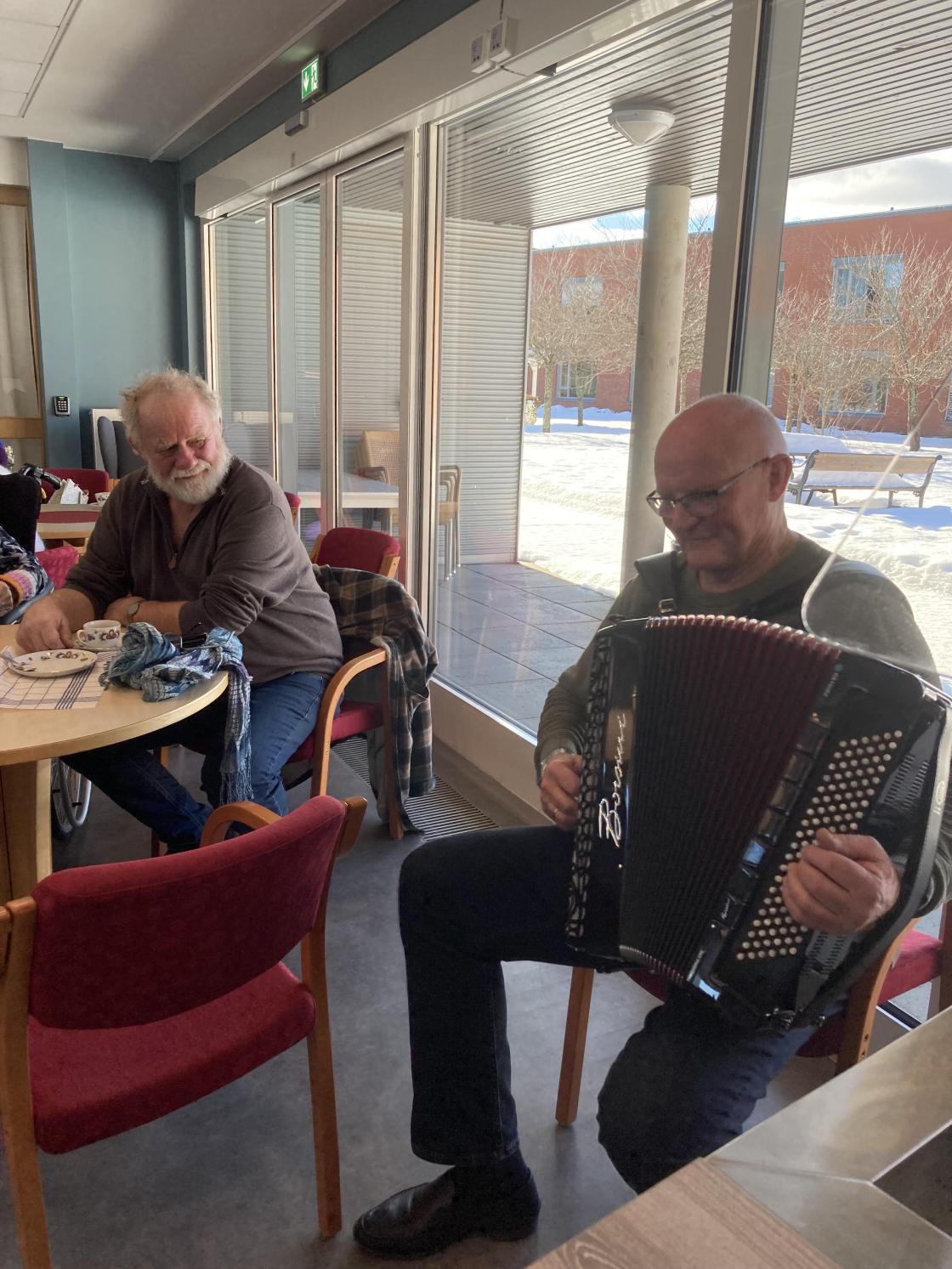 Søndag 1. mars var det tid for Bråsetkafé. Hallen på Bråset blir fort fyllt opp, og vi har litt på følelsen at vi er på en helt vanlig kafé. Denne gangen hadde Jørgen Myrre også tatt med trekkspillet til glede for alle som var der.
