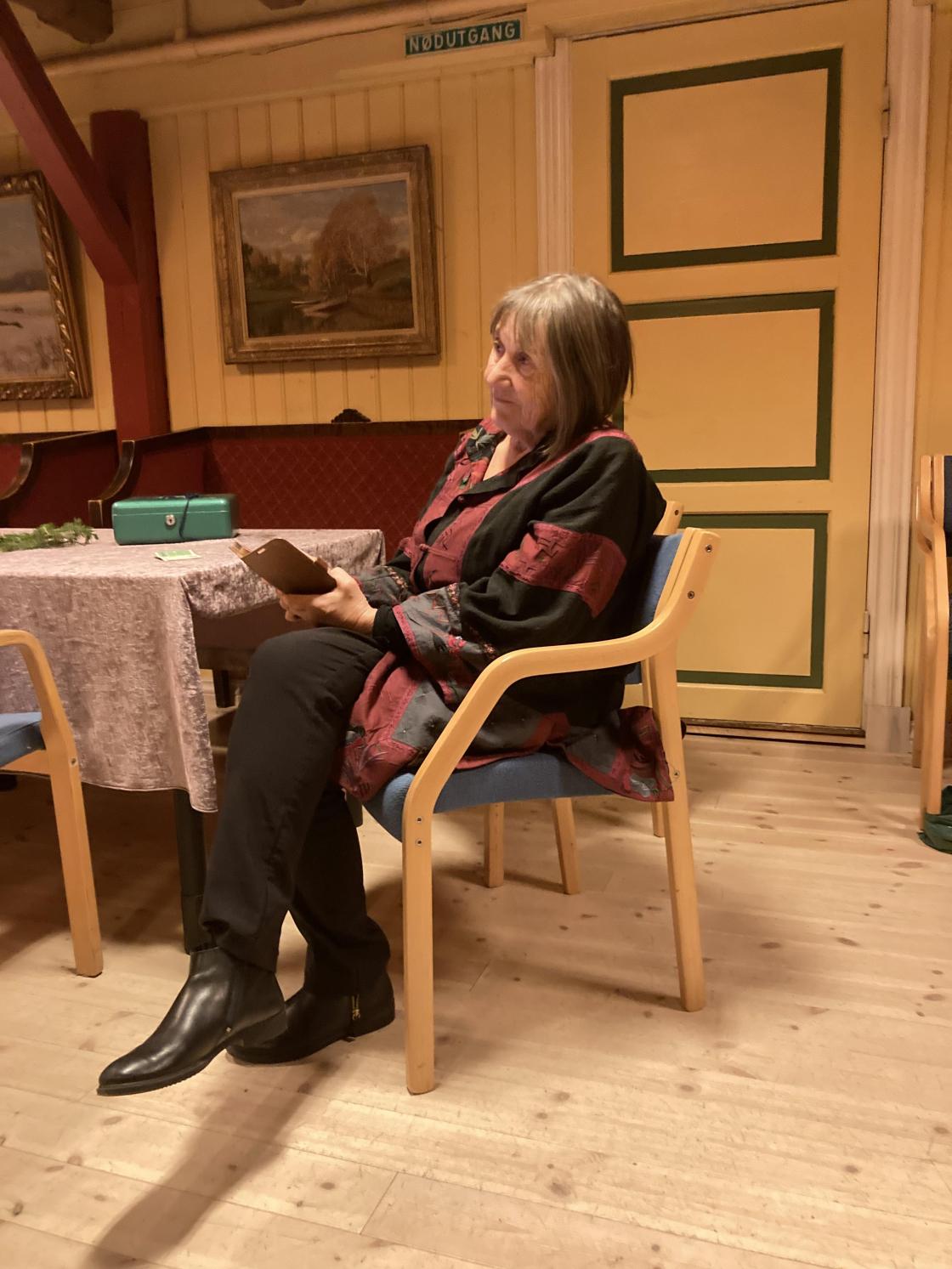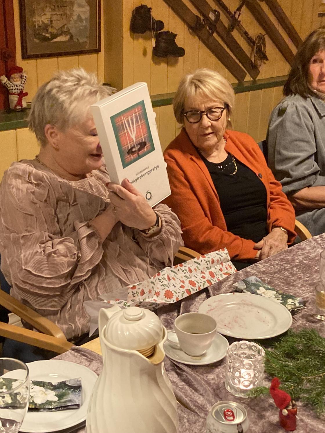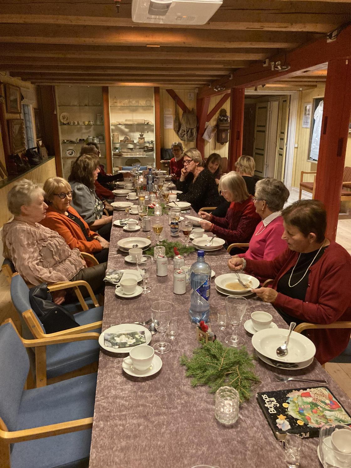 Tirsdag 10. desember hadde vi igjen gleden av å møtes til julemøte. Vi kom til et nydelig pyntet Kornmagasin der vi fikk servert mølje med godt drikke til. Kaffekomitéen hadde gjort alt klart for oss, så vi kunne kose oss. Etter maten takket Mette kaffekomitéen, Hanne Strøm som hadde vært kursleder på julepåleggskurset og Liv Veeser som gikk ut av styret etter mange års innsats - alle fikk en juleblomst.