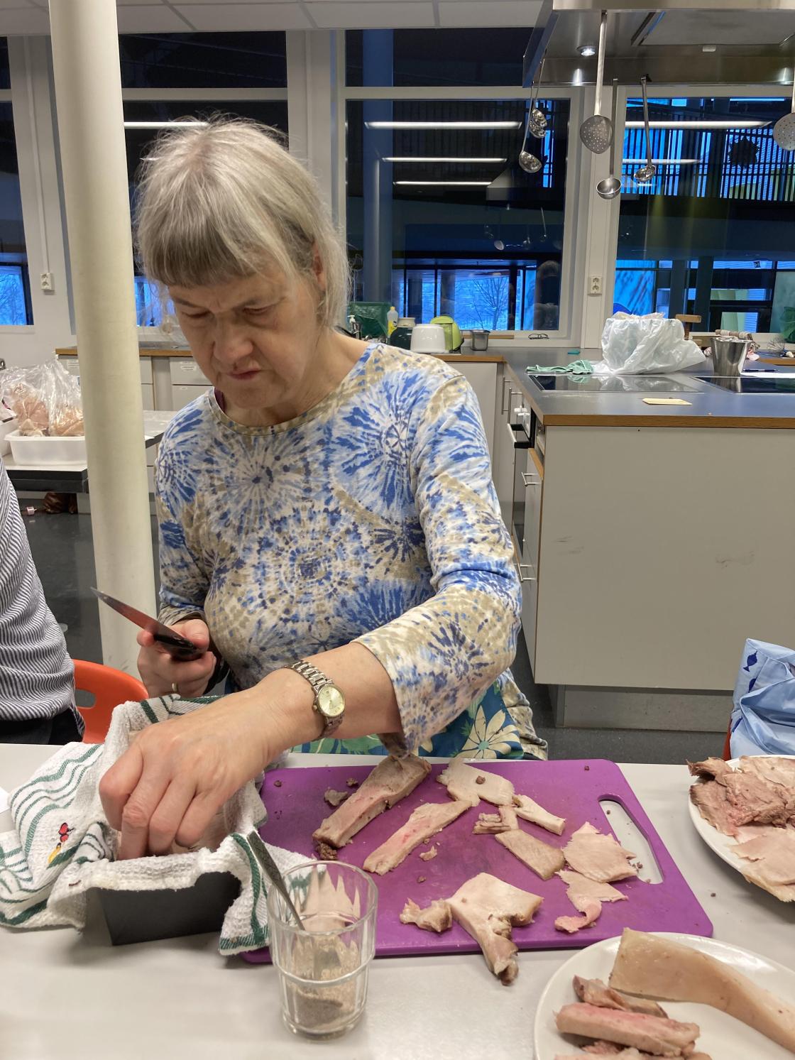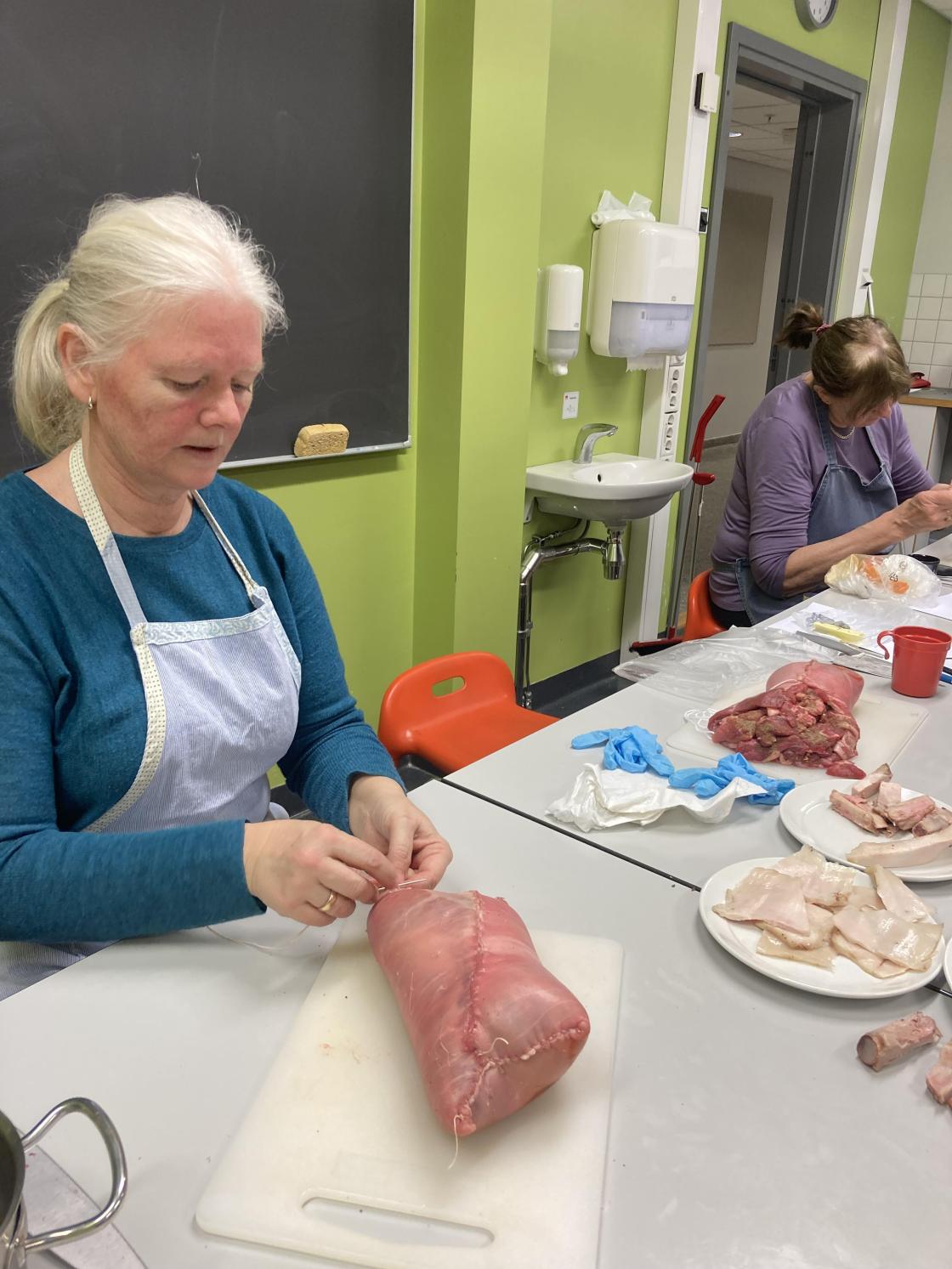 Lørdag 7.desember arrangerte vi julepåleggskurs igjen. Vi får låne skolekjøkkenet på Midtbygda skole, og det passer flott til slikt kurs. Det var seks fornøyde damer som dro hjem med leverpostei, sylte og lammerull. Hanne Strøm er kursleder, og dette kan hun! Alt var ordet i posjoner til hver og en av oss, så vi kunne bare nyte dagen! Tusen takk til Hanne!