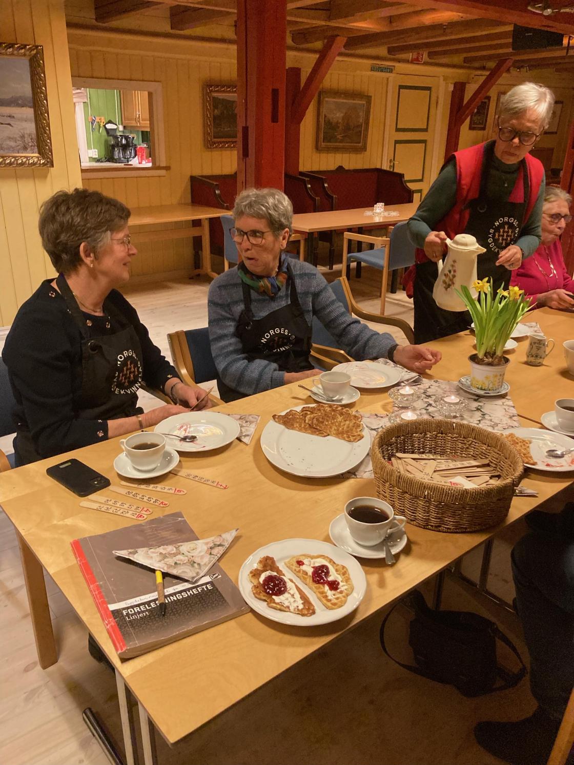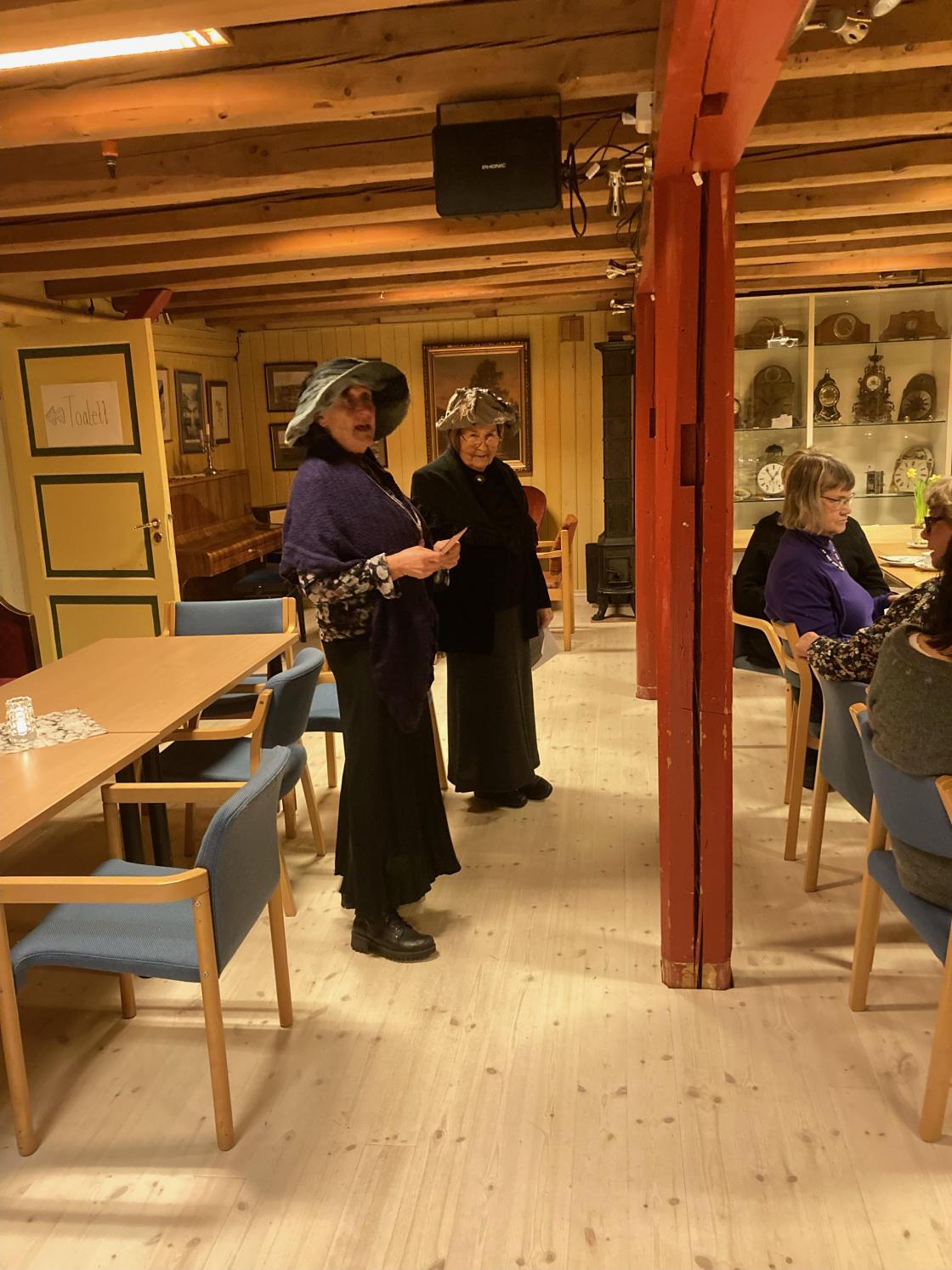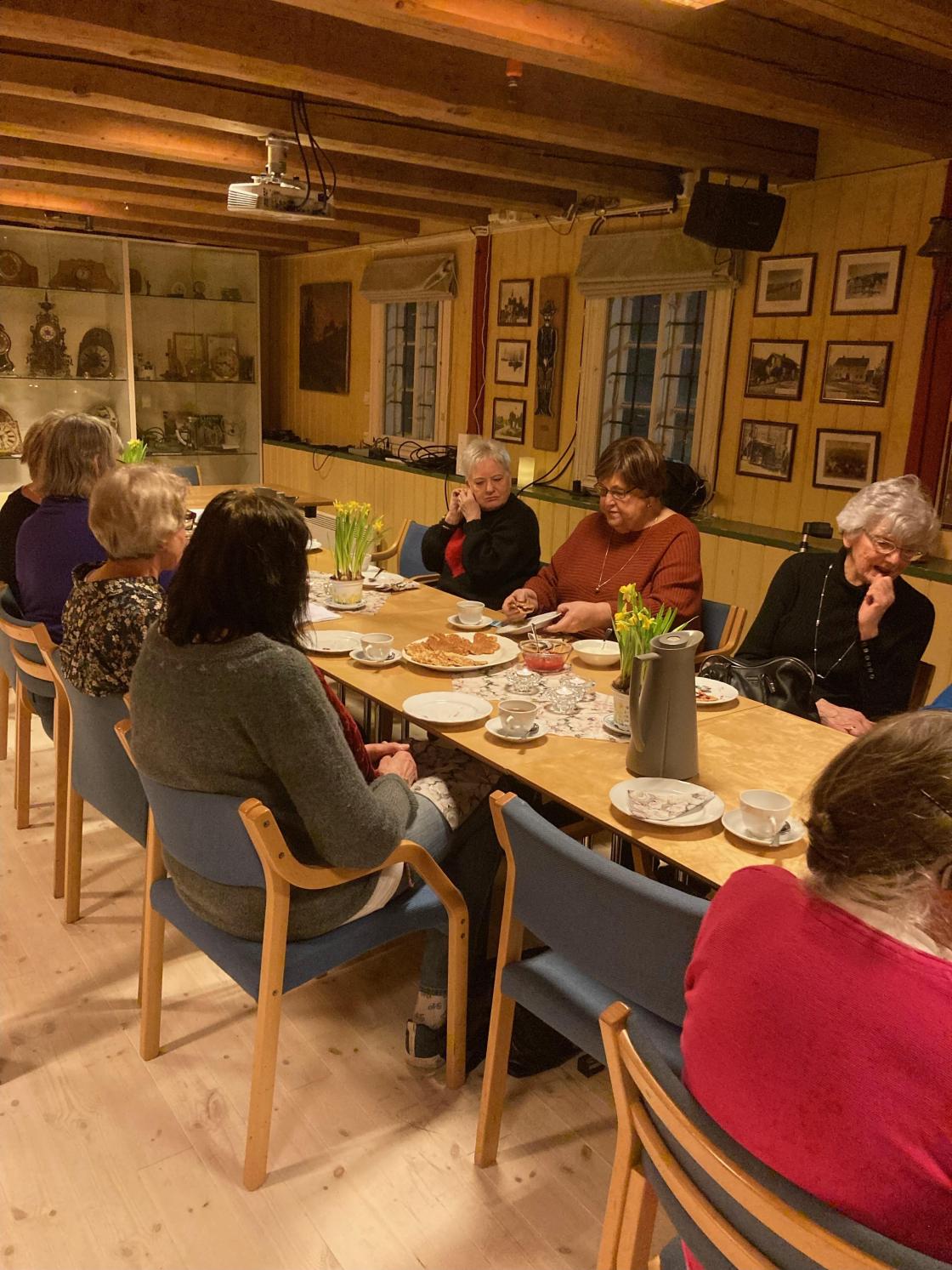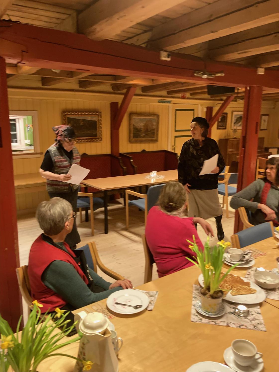 Vi arrangerte medlemsmøte på Kornmagasinet. Der var det informasjon og kaffe med deilige vafler fra Kaffekomitéen. Og som avslutning hadde Rønnaug og Anne et veldig morsomt og interessant underholdningsinnslag om noen av våre modige og staute formødre.