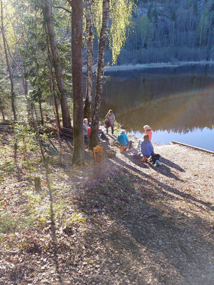 Fredag 25. april var vi på nydelig ramsløktur med Heidi som guide. Været var topp, og det var mengder med ramsløk. Da vi hadde plukket det vi trengte, tok vi kaffepause ved et av vannene i deilig kveldssol.