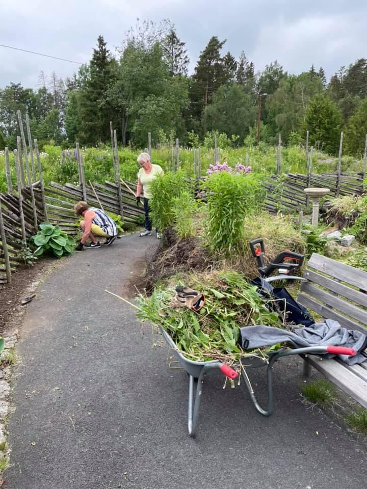 To dugnads kvelder i sansehagen på Eskelundtunet. Ugrasset måtte vike for mange koselige stauder. Både personalet, beboere og bygdekvinner var veldig fornøyde med resultatet.