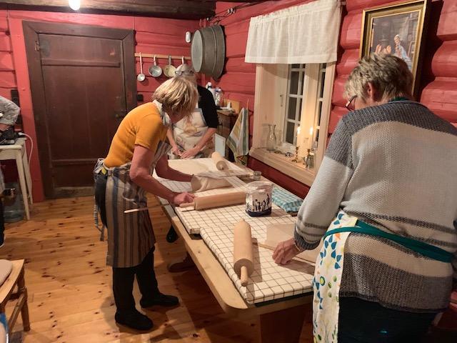 En hyggelig kurskveld med flatbrød og lefser i Lybystua. Vi som var med ble virkelig motivert til å gå i gang hjemme og finne frem kjevla og takka. Takk til lærer Anne Grethe!