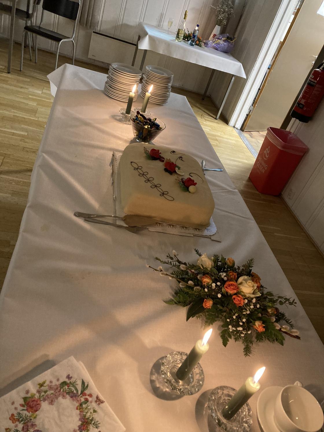 Kvelden ble avsluttet med marsipankake og kaffe.