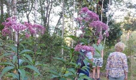 Vi fikk omvisning i en flott og annerledes hage og skog/skyggehage med et rikholdig utvalg av nytteplanter, stauder skygge- og surjordsplanter og busker.